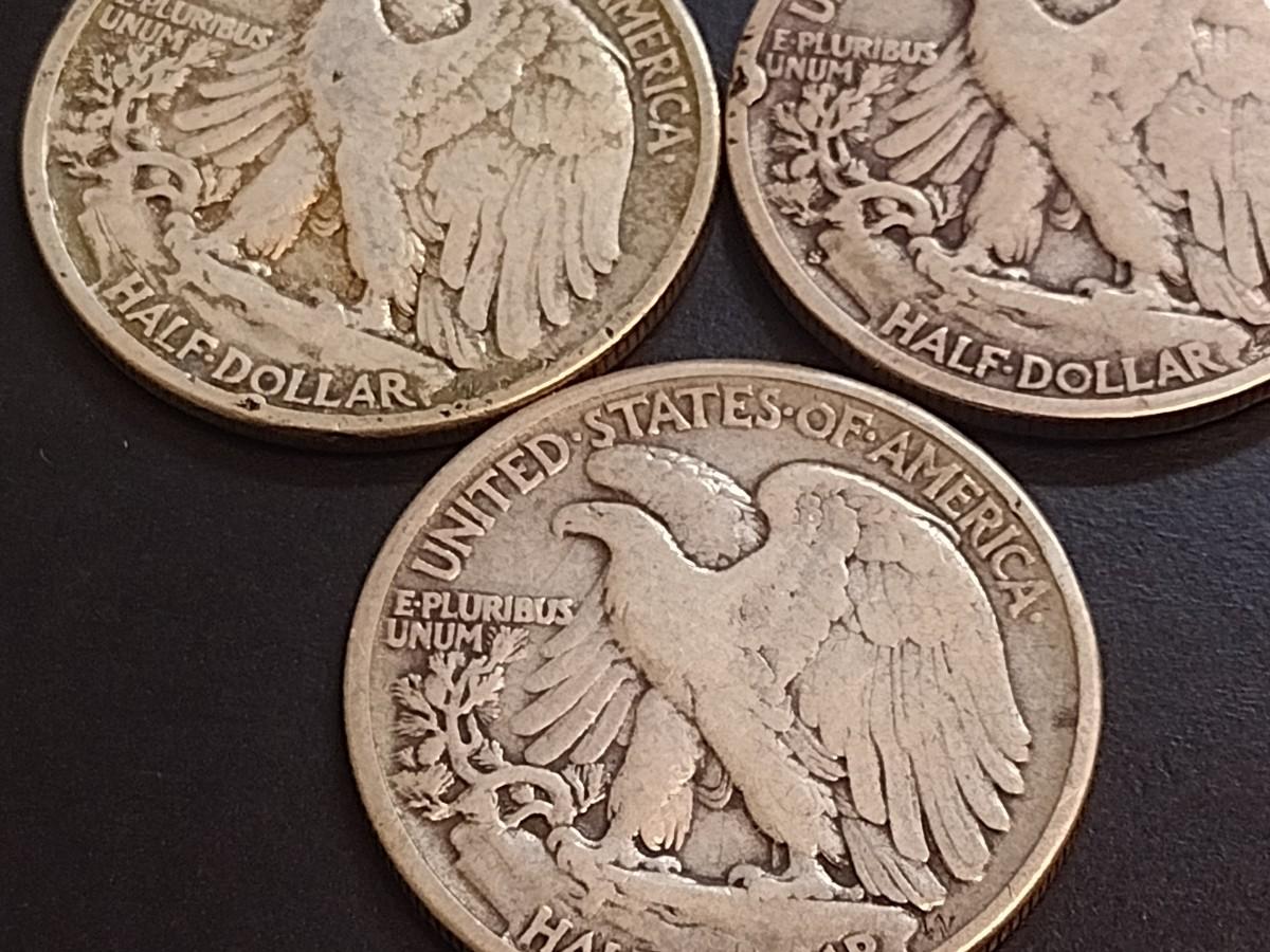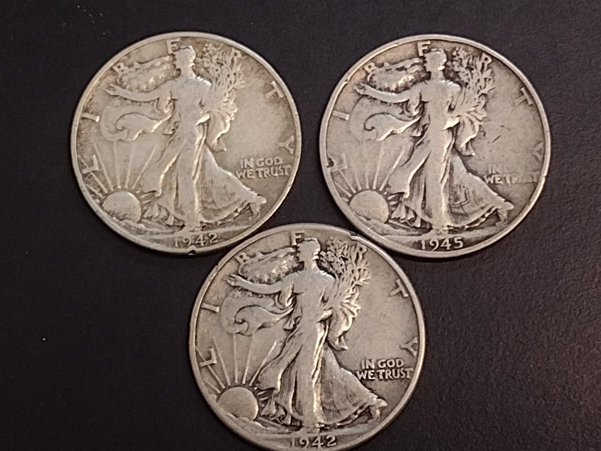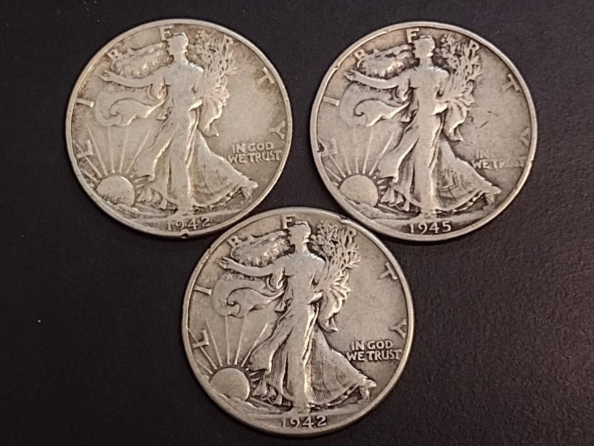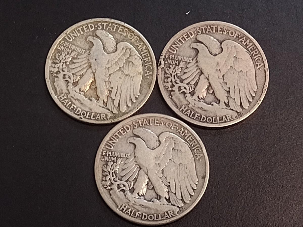 Set of Three U. S. Mint Walking Liberty Silver Half Dollars Circulated (66) Various Dates