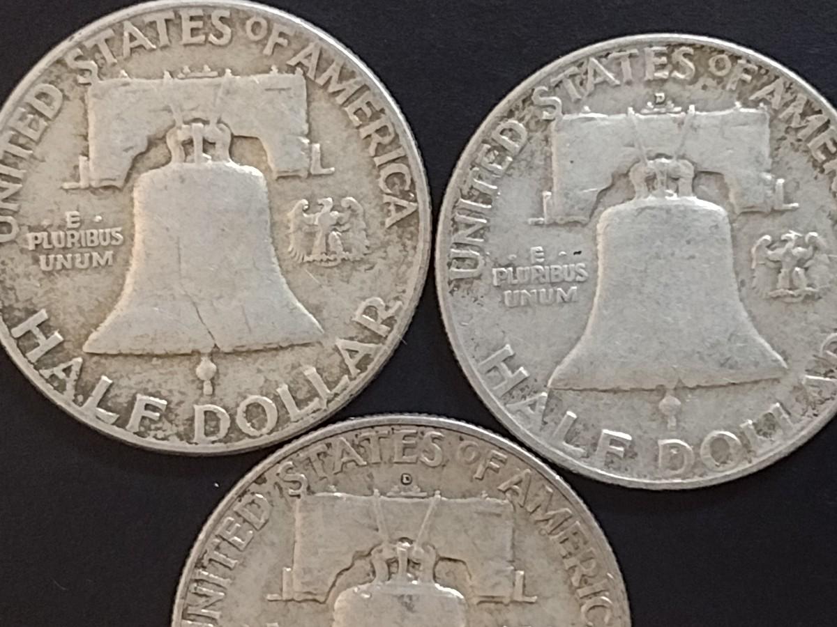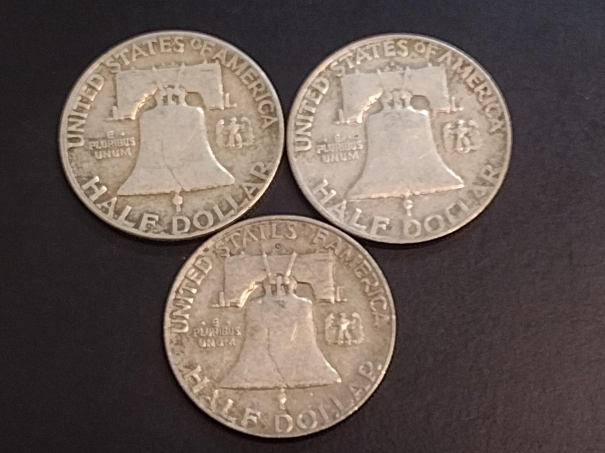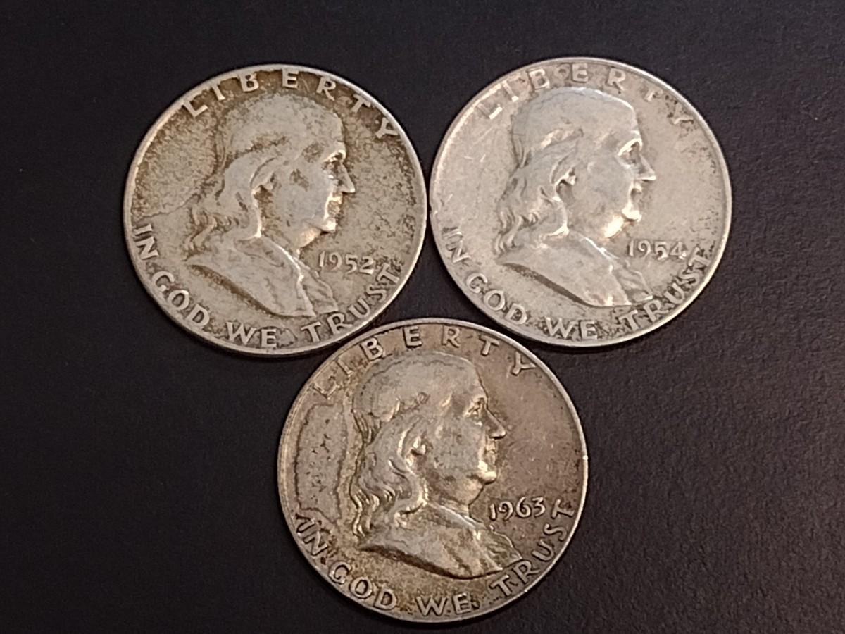 Set of Three U. S. Mint Franklin Silver Half Dollars Circulated Various Dates (67)