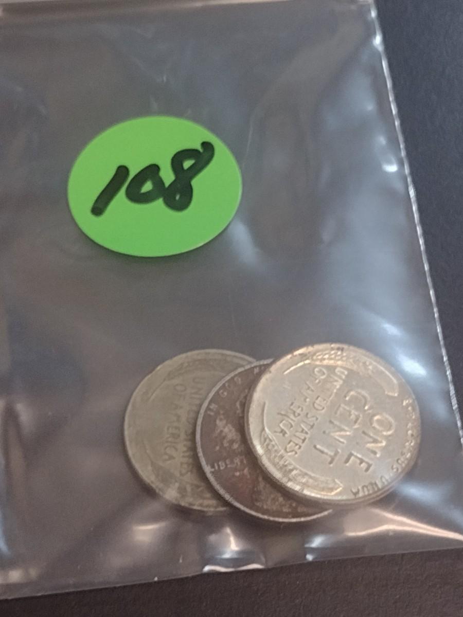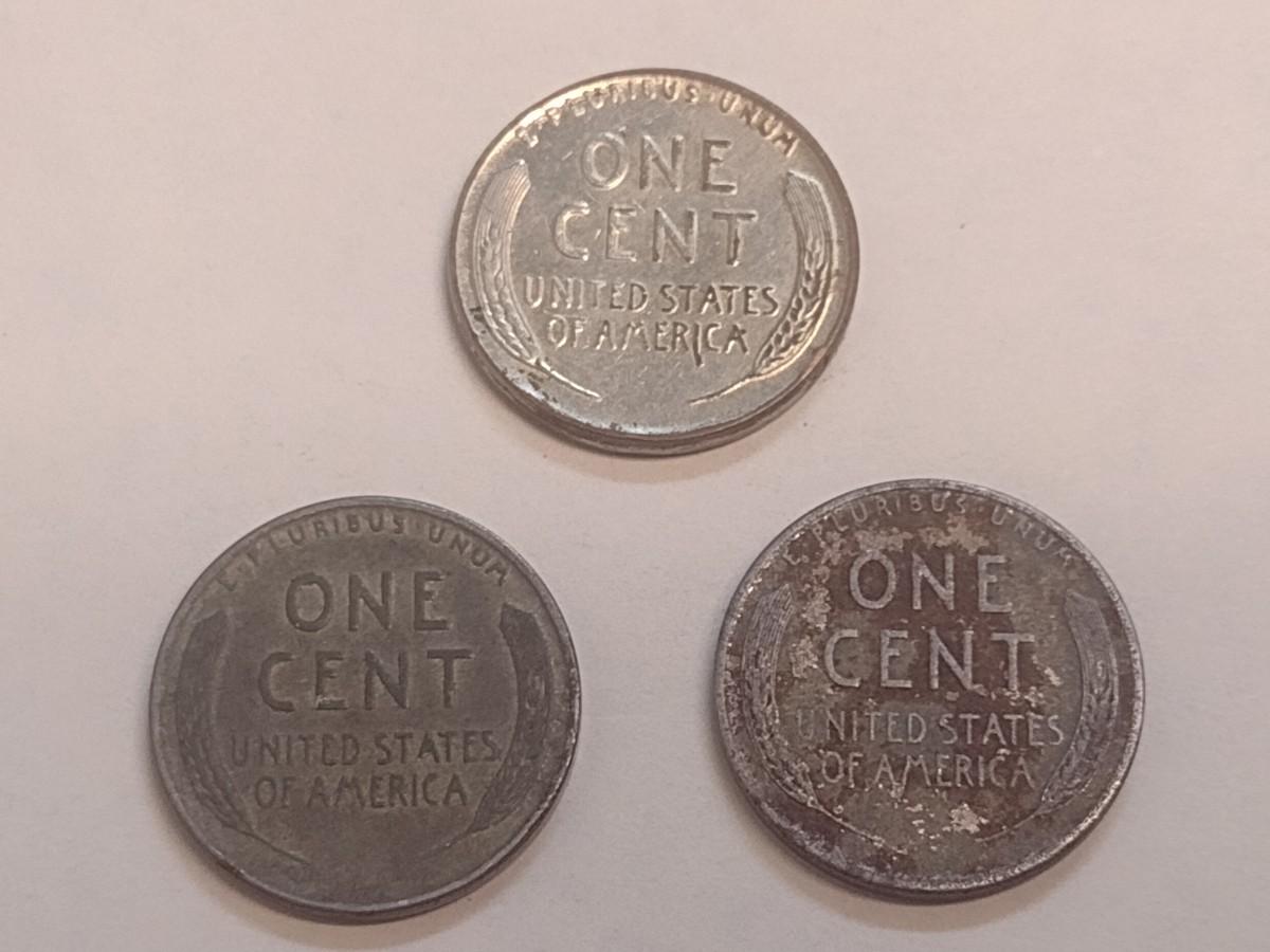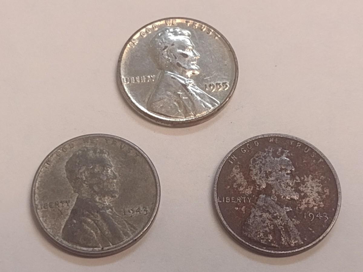 Set of Three U. S. Steel Wheat Pennies 1955, and Two 1943 (#108)