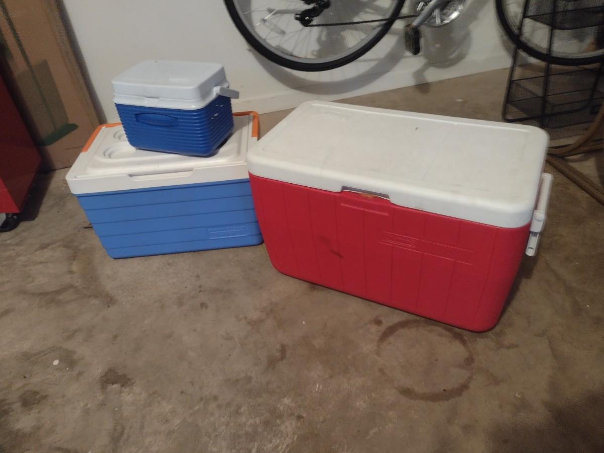 Set of Three Various Sized Coolers Igloo and Coleman Brands