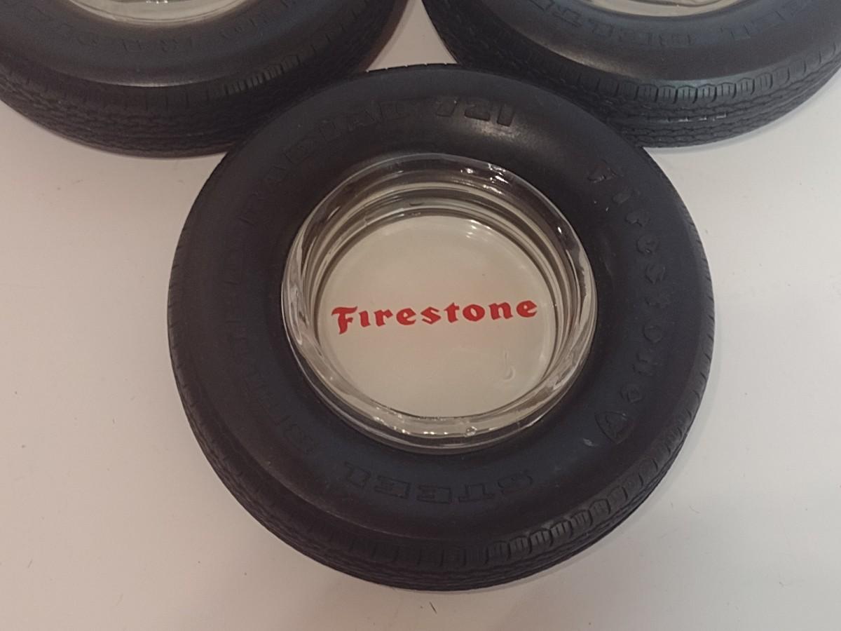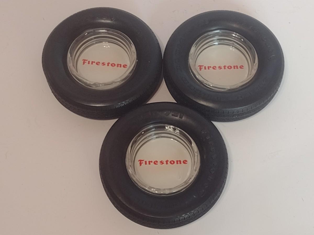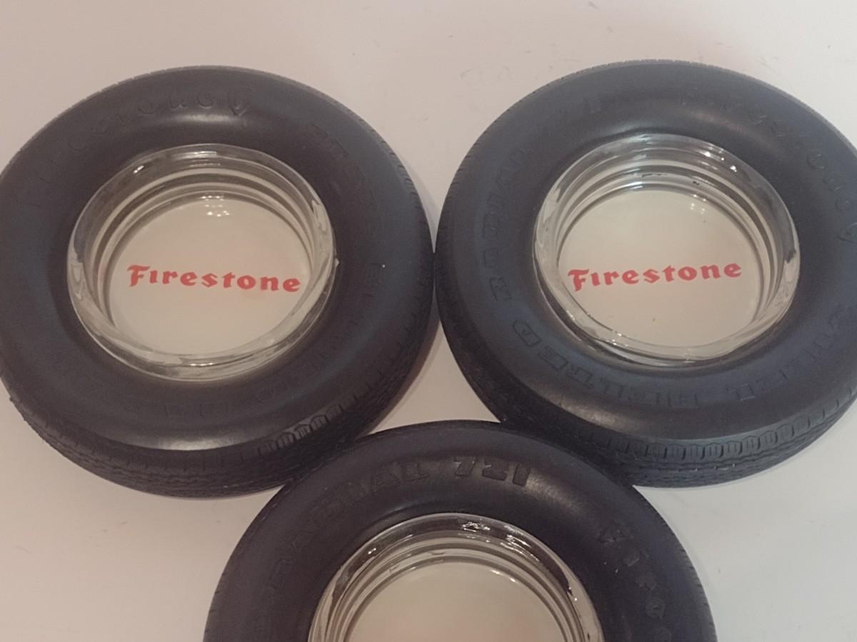 Set of Three Vintage Advertising Firestone Tires Ashtrays Inserted in Rubber Tire
