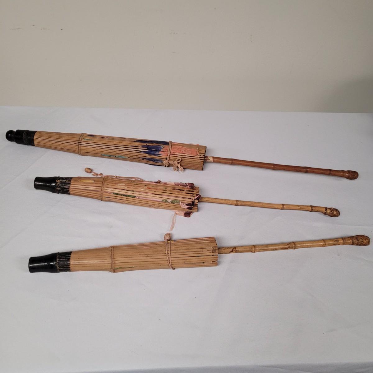Set of Three Vintage Asian Parasols with Bamboo Handles (N-CE)