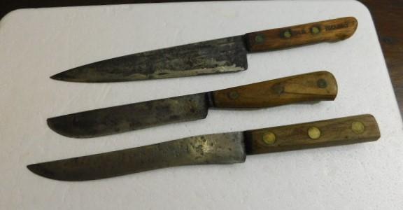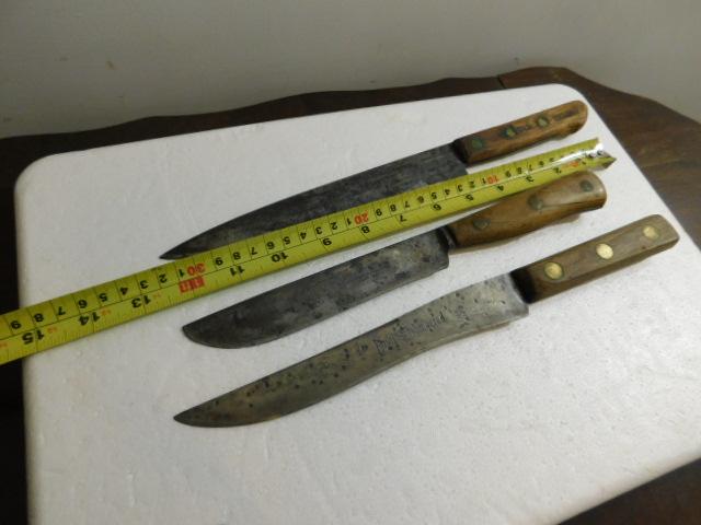 Set of Three Vintage Butcher Style Knives Includes Old Hickory