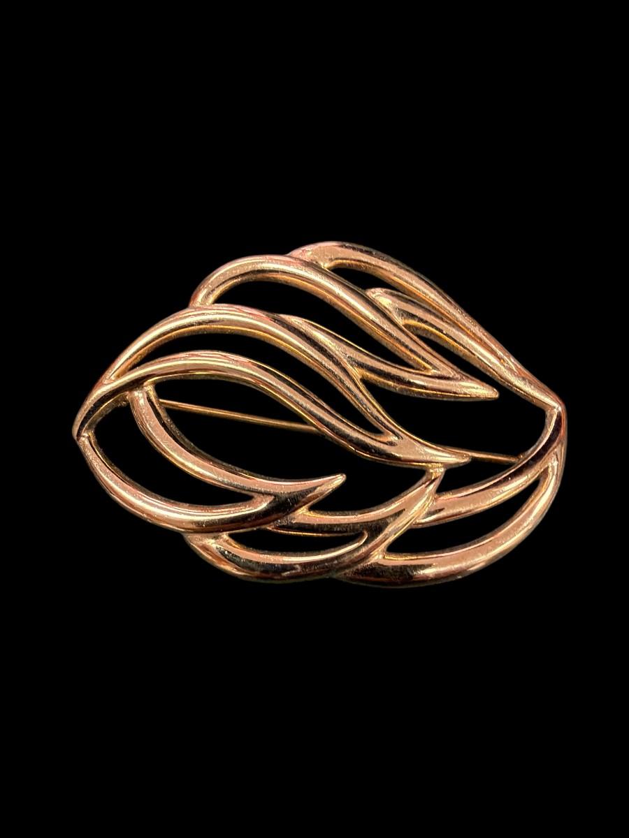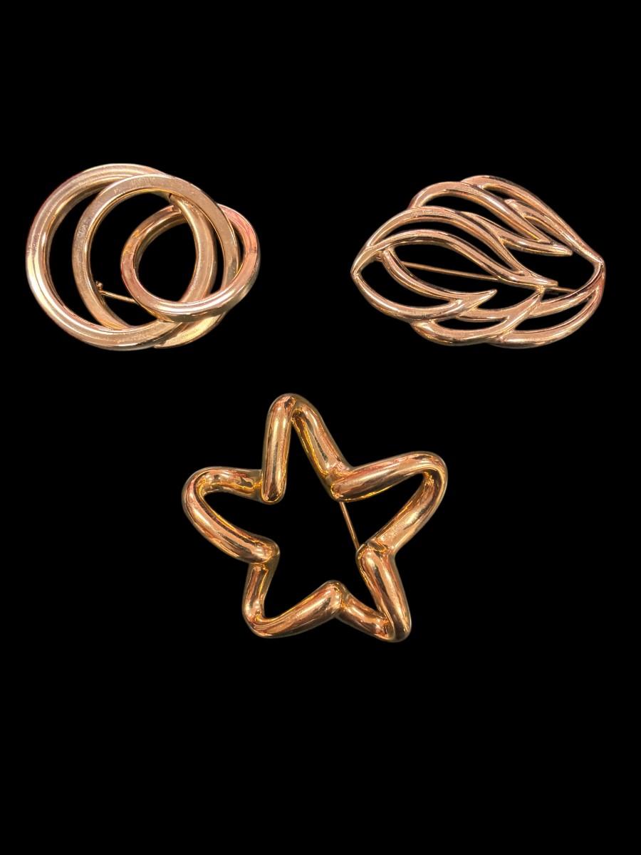 Set of Three Vintage Gold Tone Abstract Brooches
