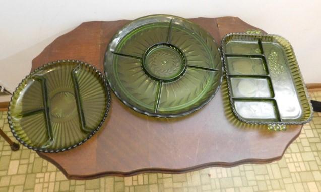 Set of Three Vintage Green Serving Platters