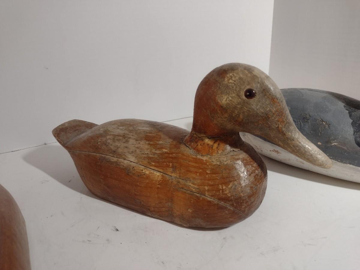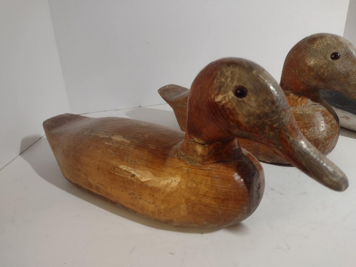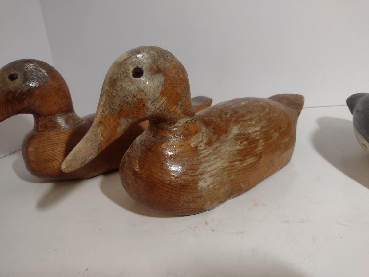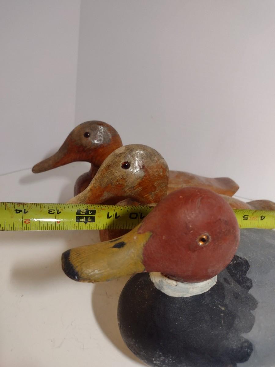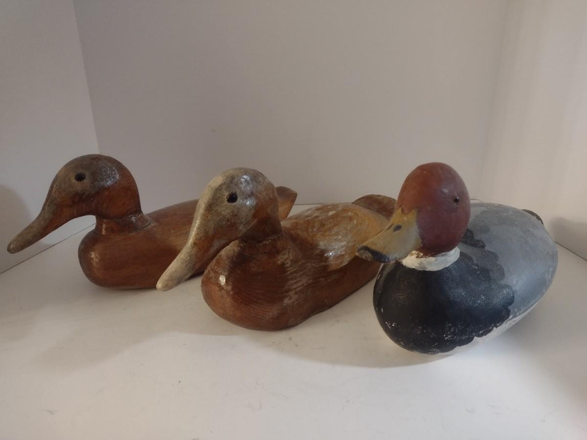 Set of Three Vintage Hand Carved Wood Decoy Ducks