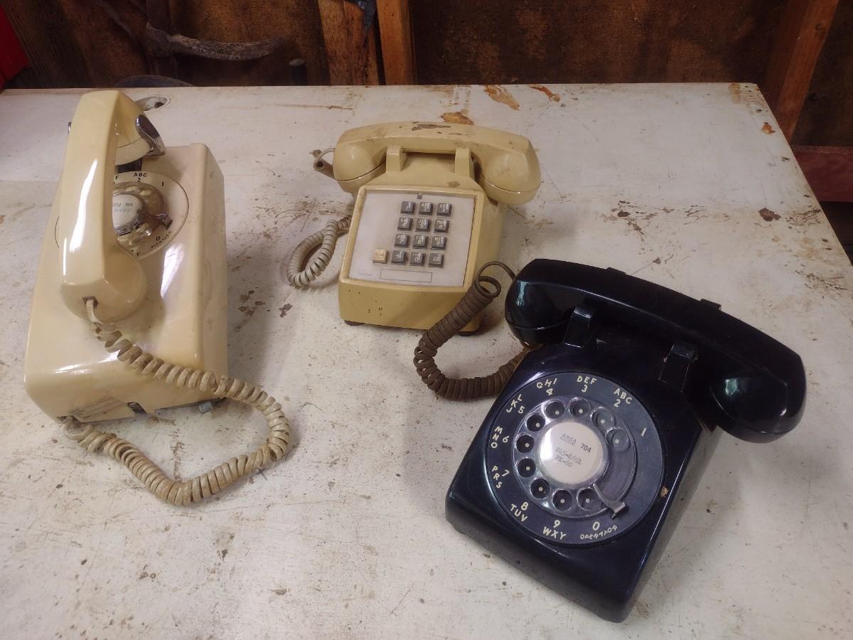 Set of Three Vintage Land Line Telephones Rotary Dial and Push Dial