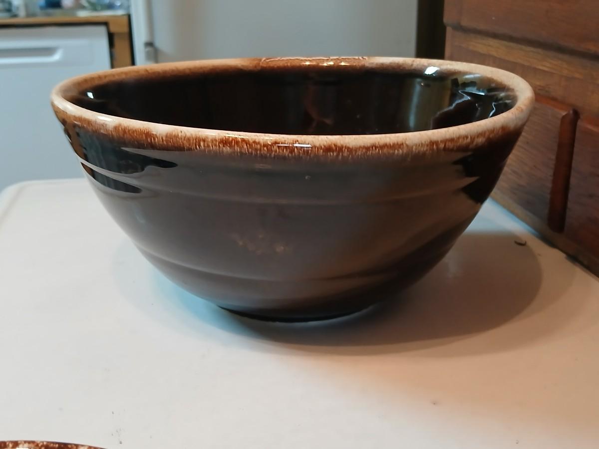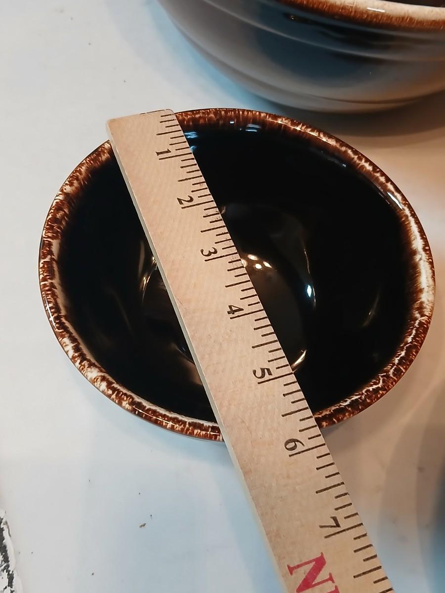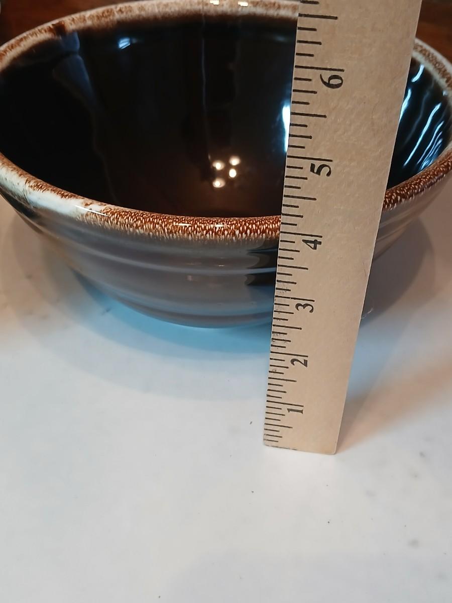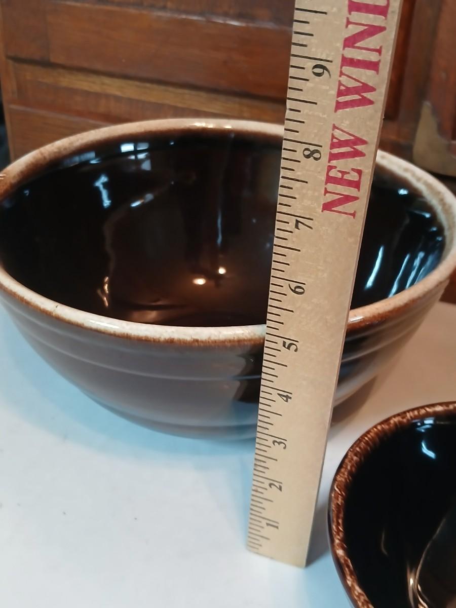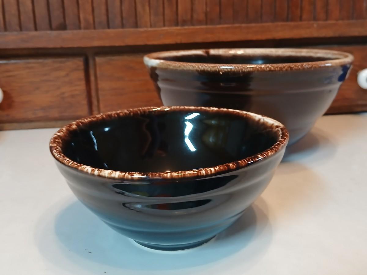 Set of three vintage- Nesting glazed brown stoneware drip edge bowls