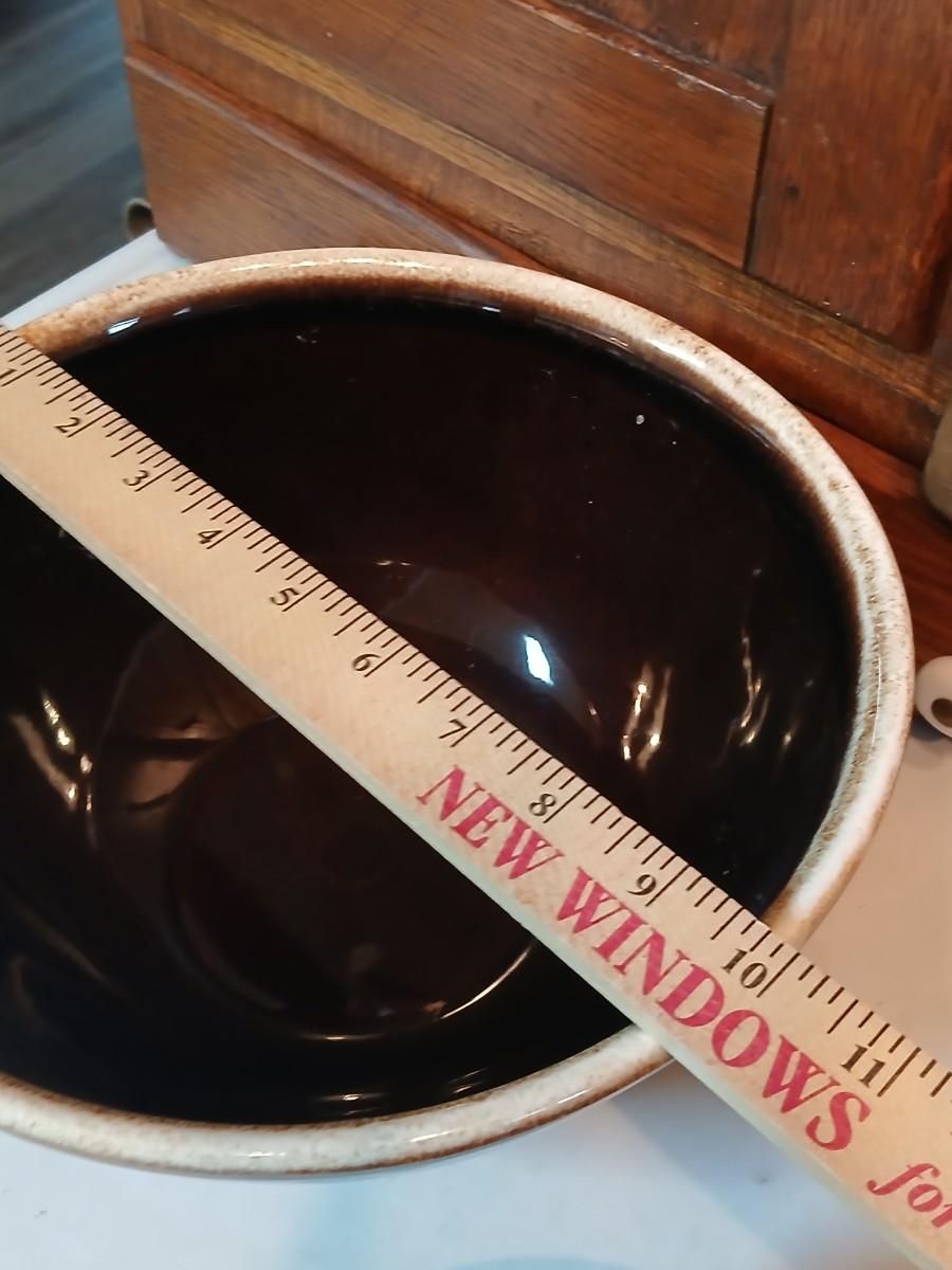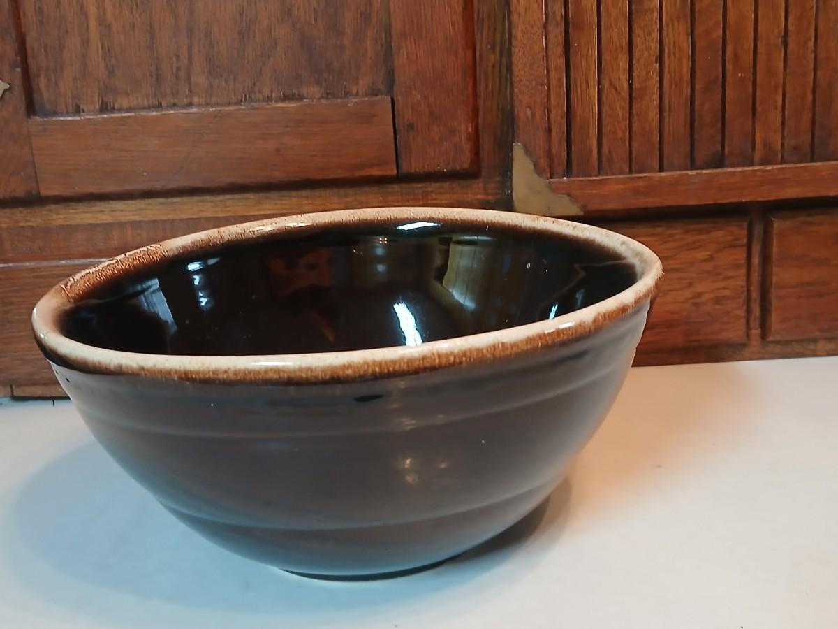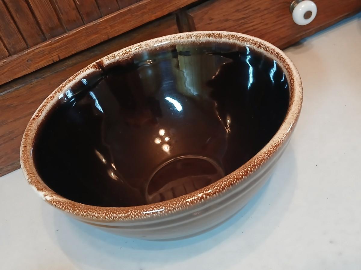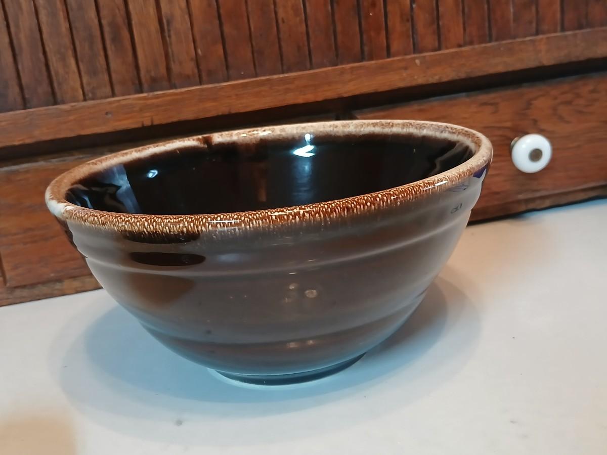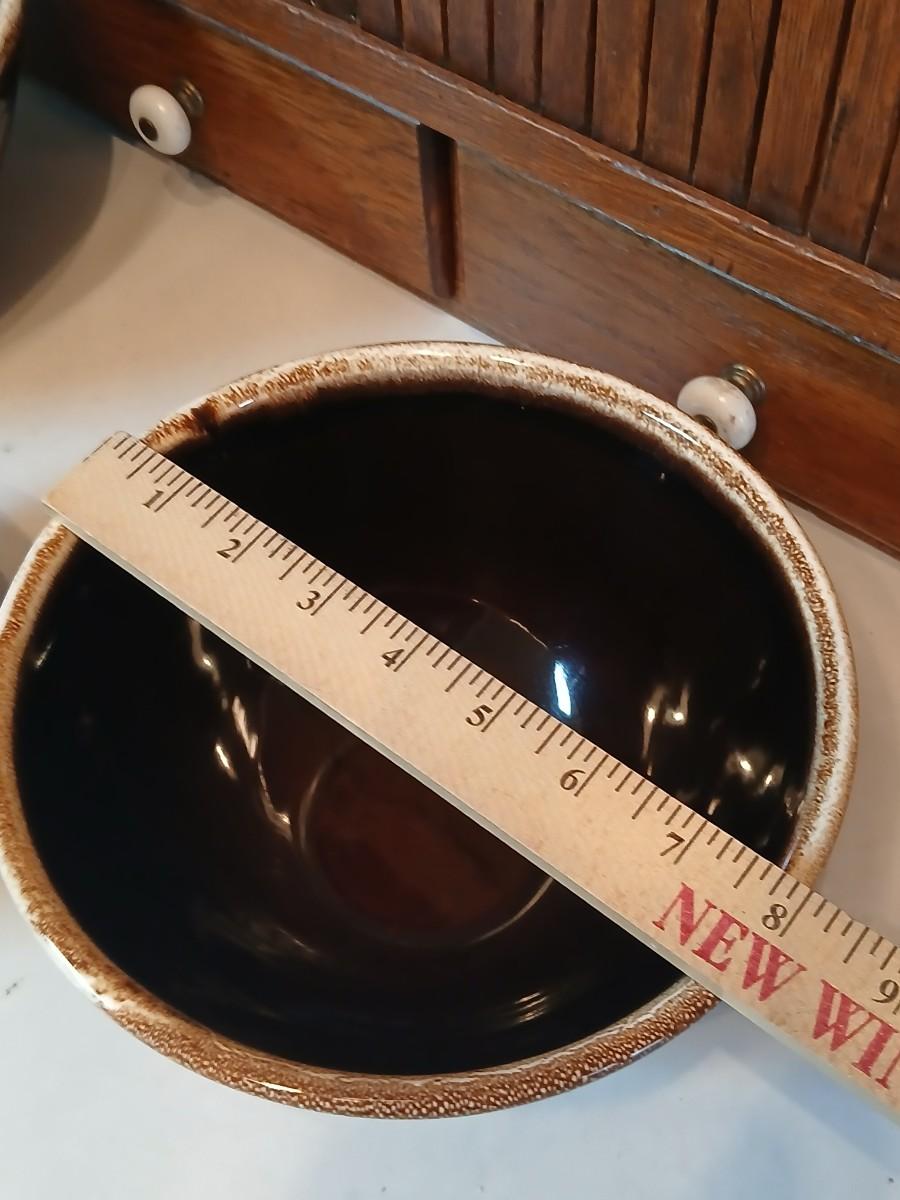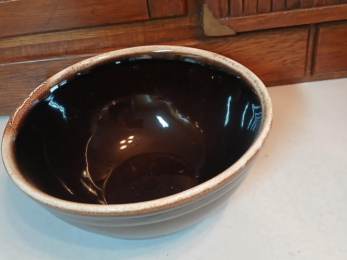 Set of three vintage- Nesting glazed brown stoneware drip edge bowls