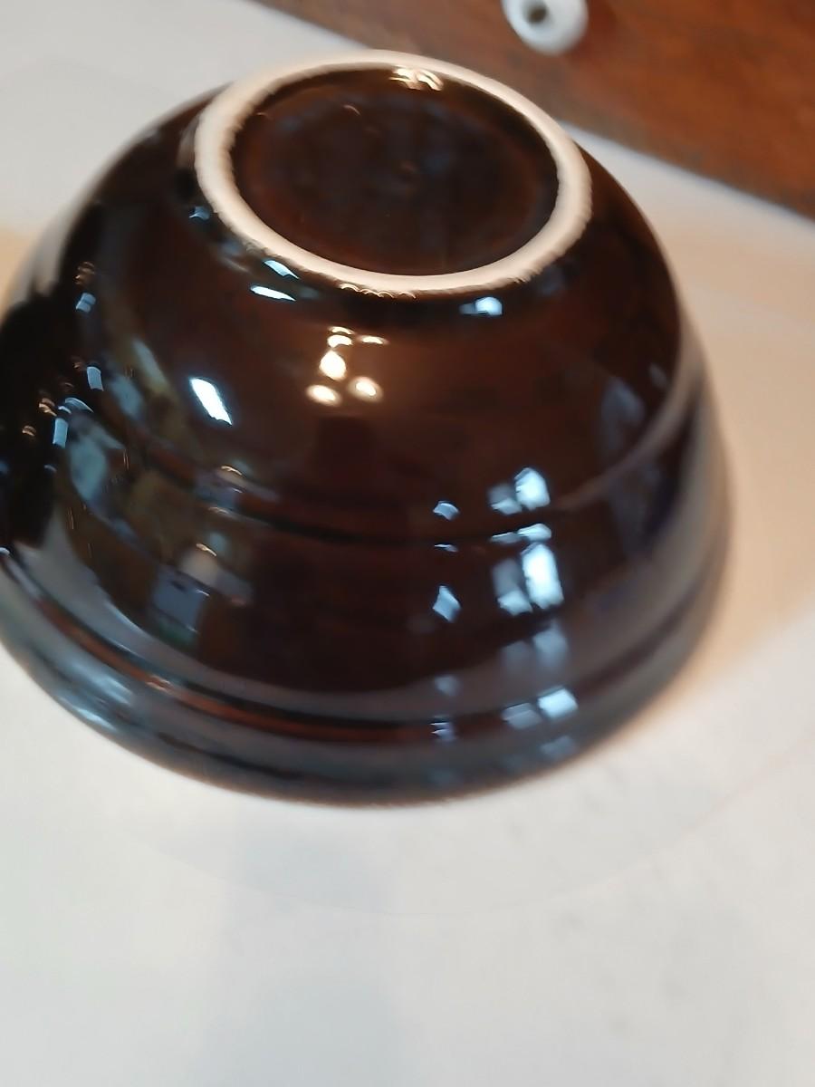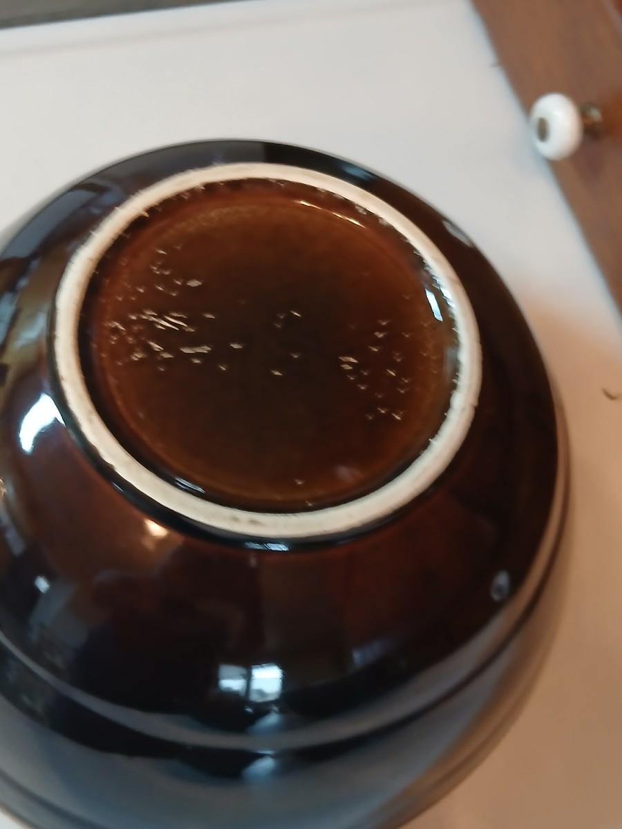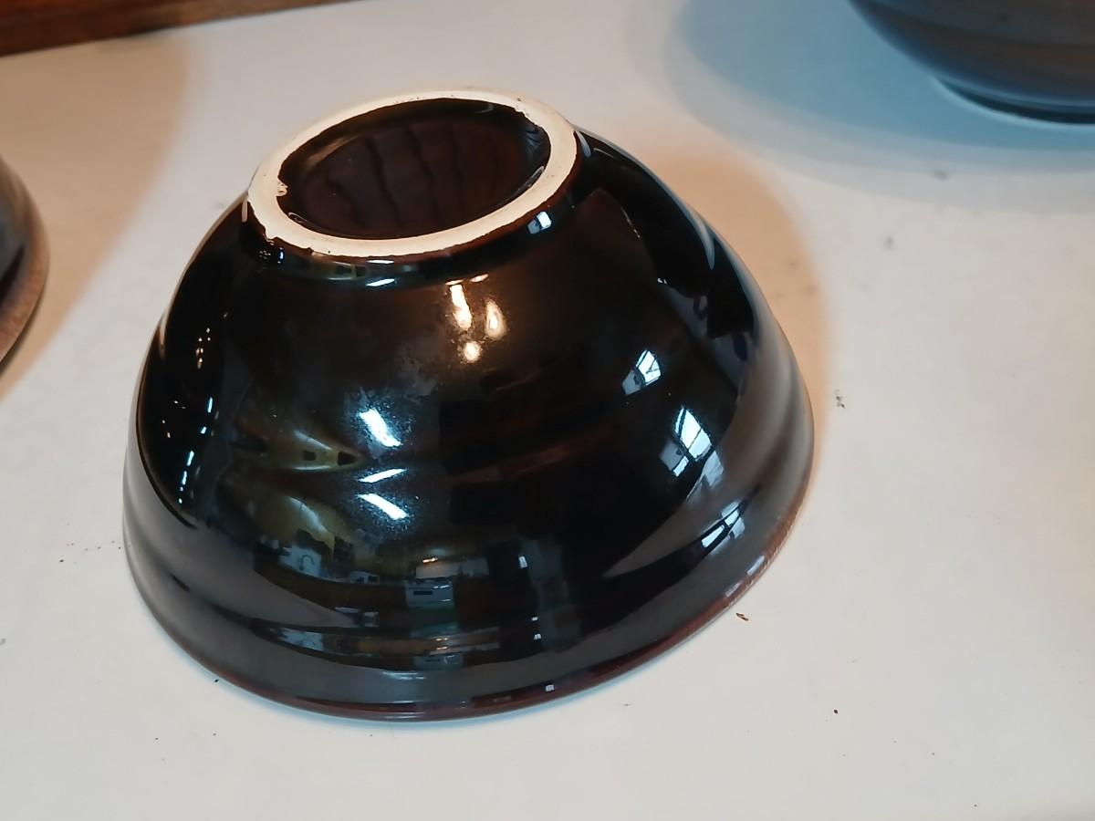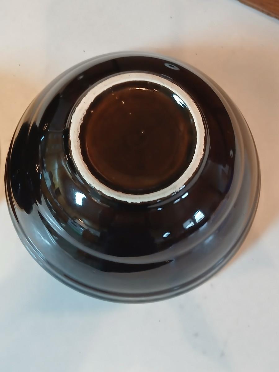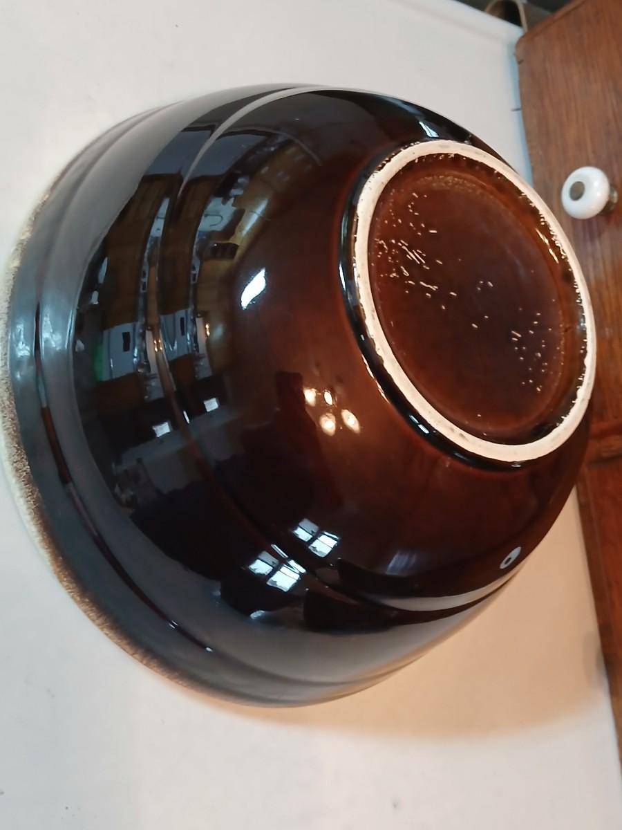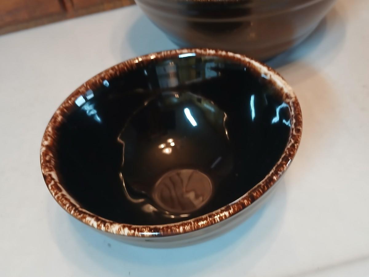 Set of three vintage- Nesting glazed brown stoneware drip edge bowls