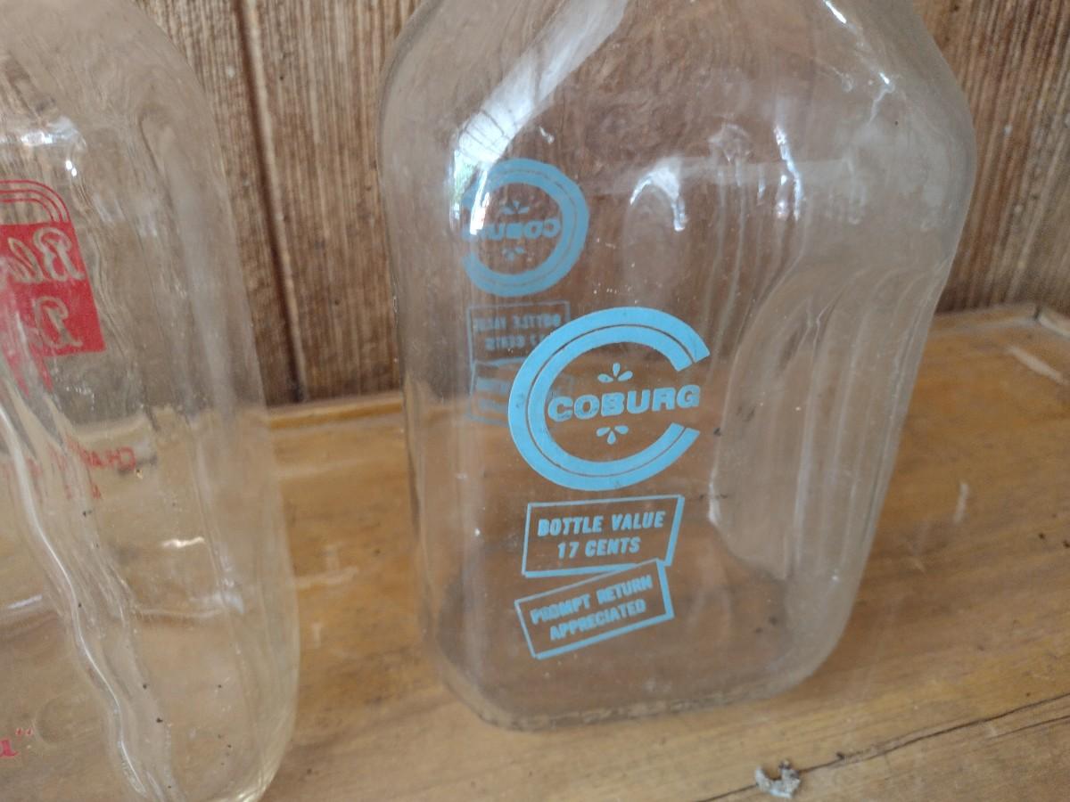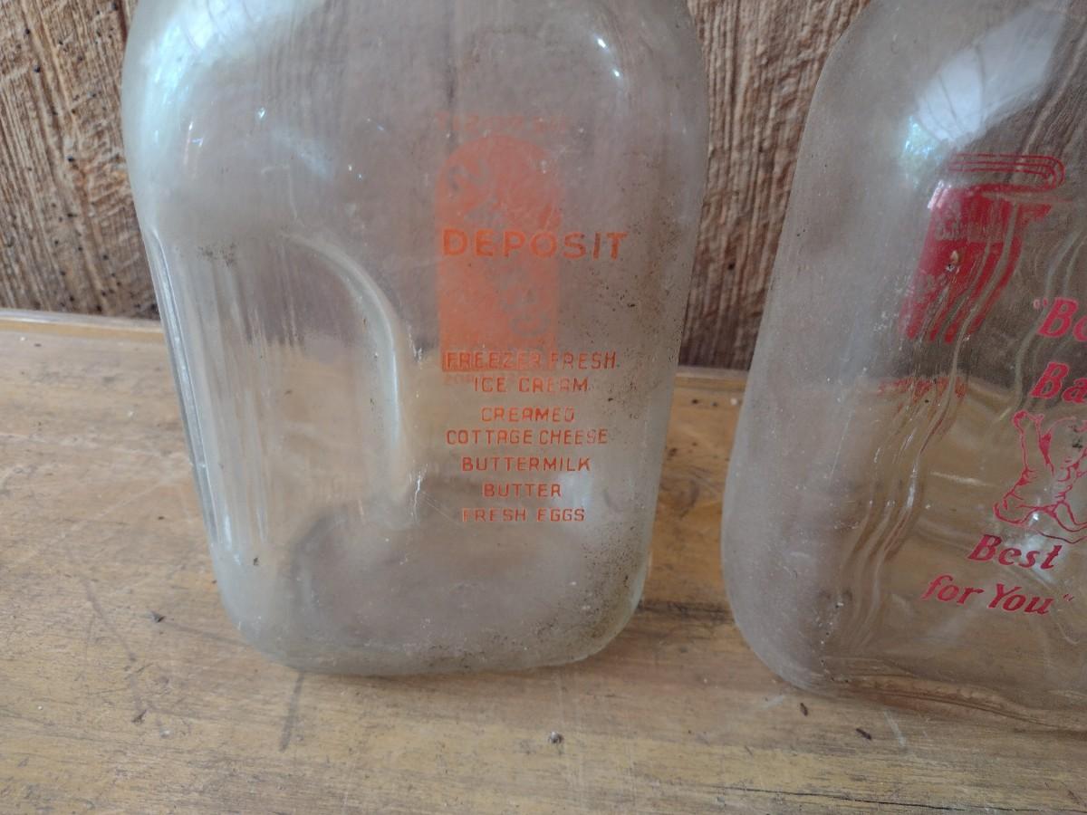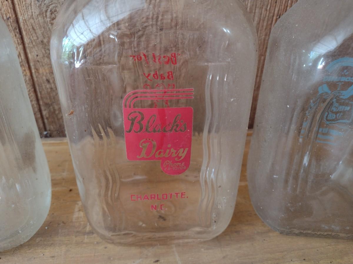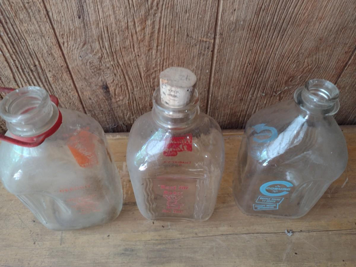 Set of Three Vintage Painted Logo Dairy Glass Half Gallon Milk Bottles Gerow's Dairy, Black's Dairy and Coburg (#45)