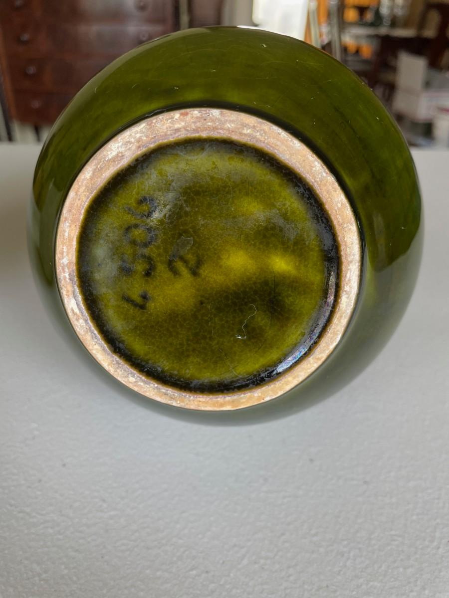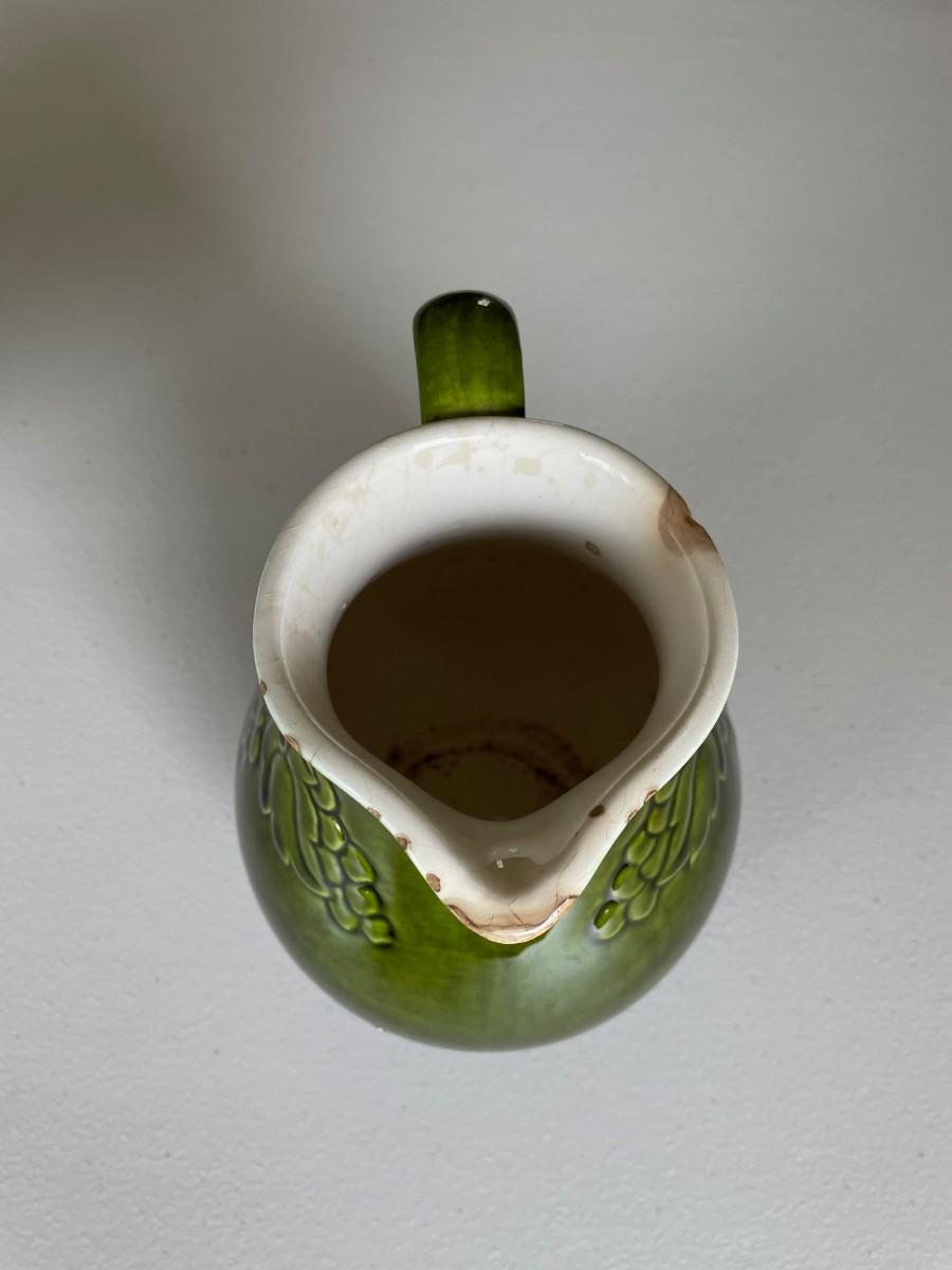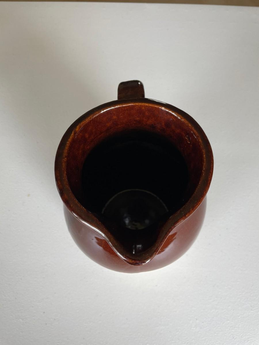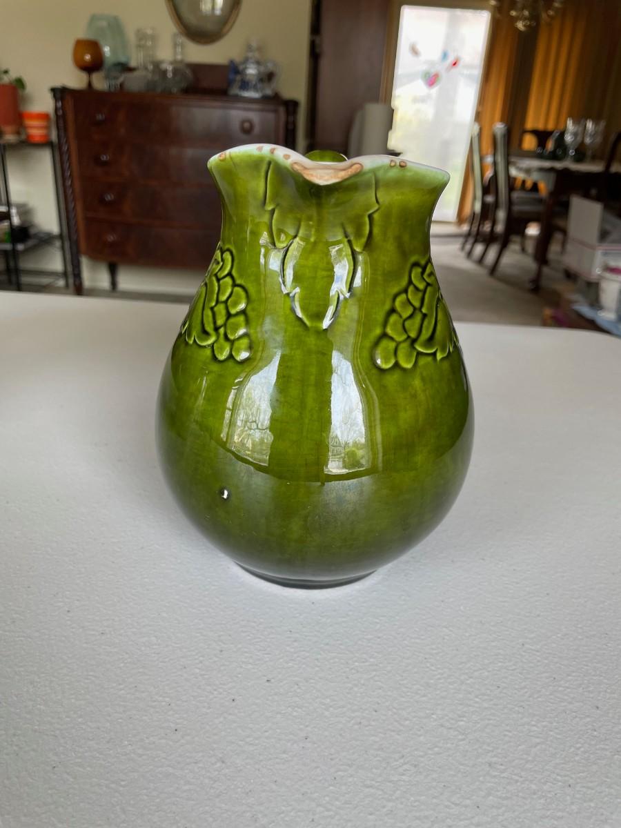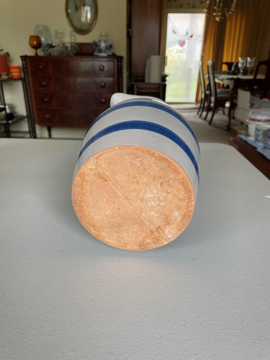 Salt Glazed Stoneware Pitcher Brown: 8 1/2(h) x 5 1/2. In excellent condition. Stoneware Pottery Pitcher with two blue bands: 8 1/2 x 5 1/2. Green 6 1/2(h) x 5.