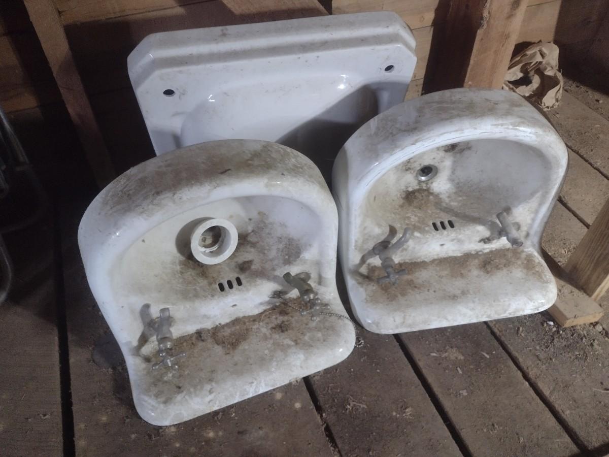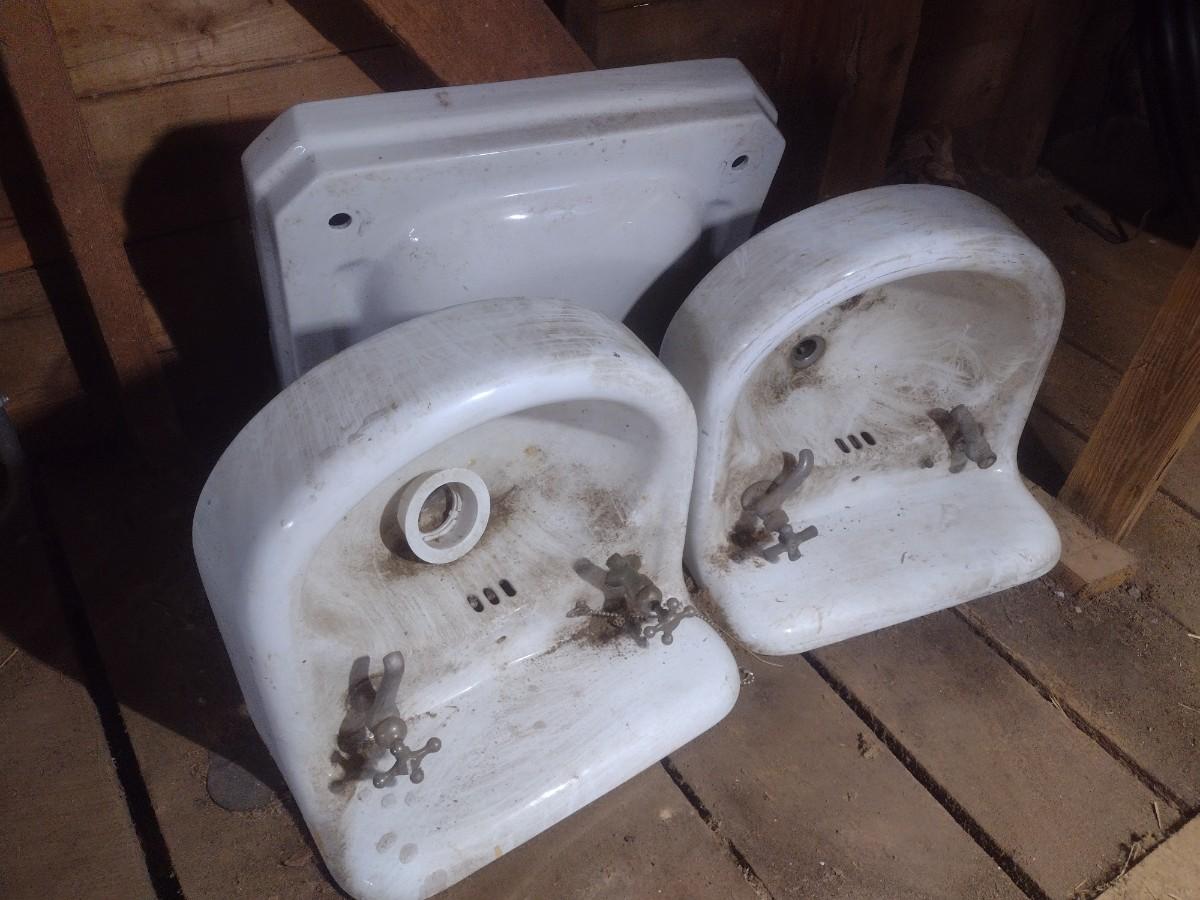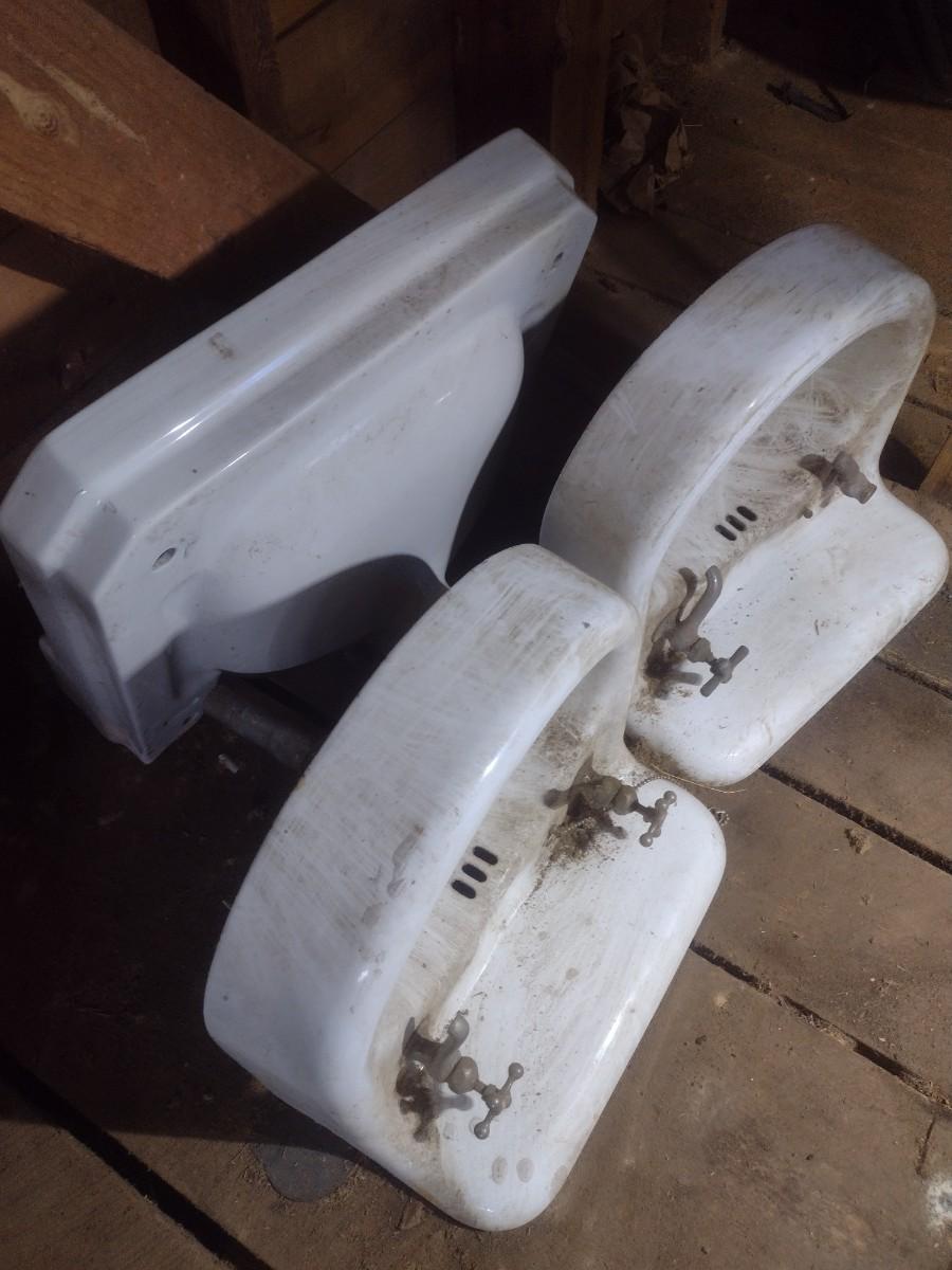 Set of Three Vintage Porcelain Single Basin Sinks