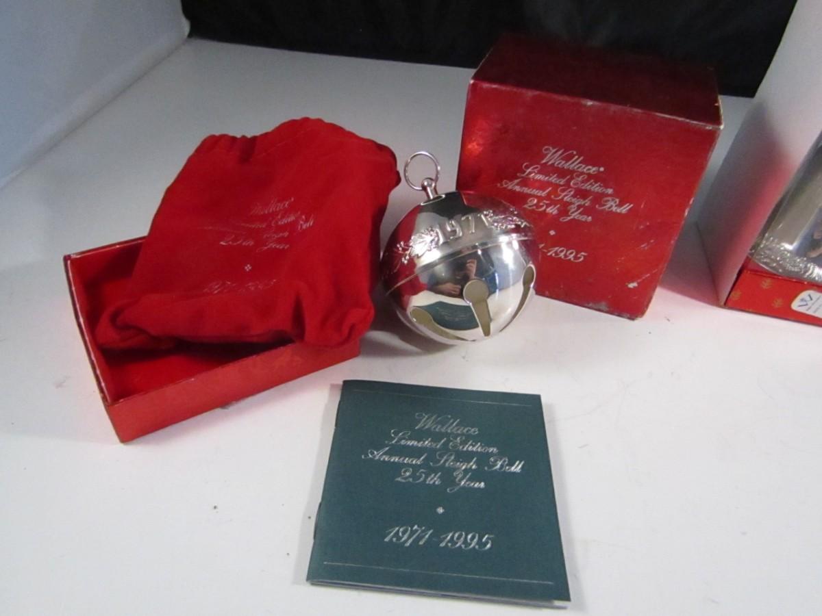 Set of Three Vintage Wallace Silversmiths Limited Edition Sleigh Bells and Table Bell
