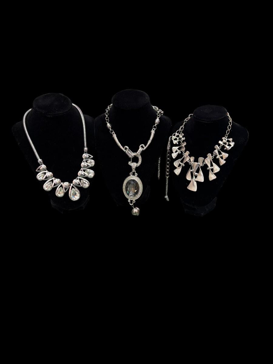 Set of Three Vintage Women's Fashion Silver Toned Necklaces