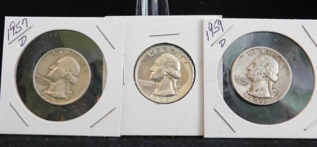 Set of Three Washington Silver Date Quarters Various Grades Choice Two