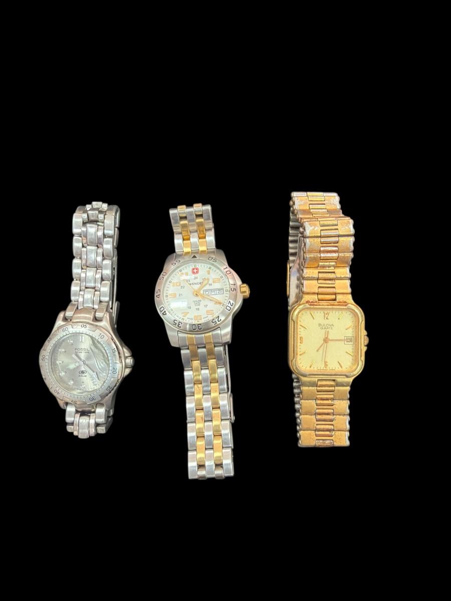 Set of three Watches NON TESTED NON WORKING Fossil, Pulsar, Wenger