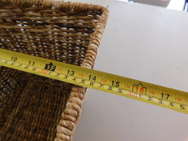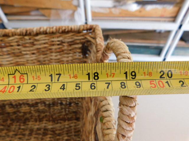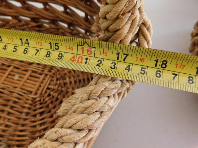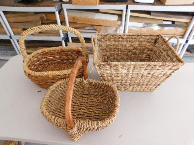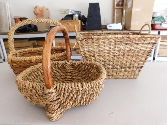 Set of Three Wicker Rattan Weave Baskets with Handles measurements in pictures below