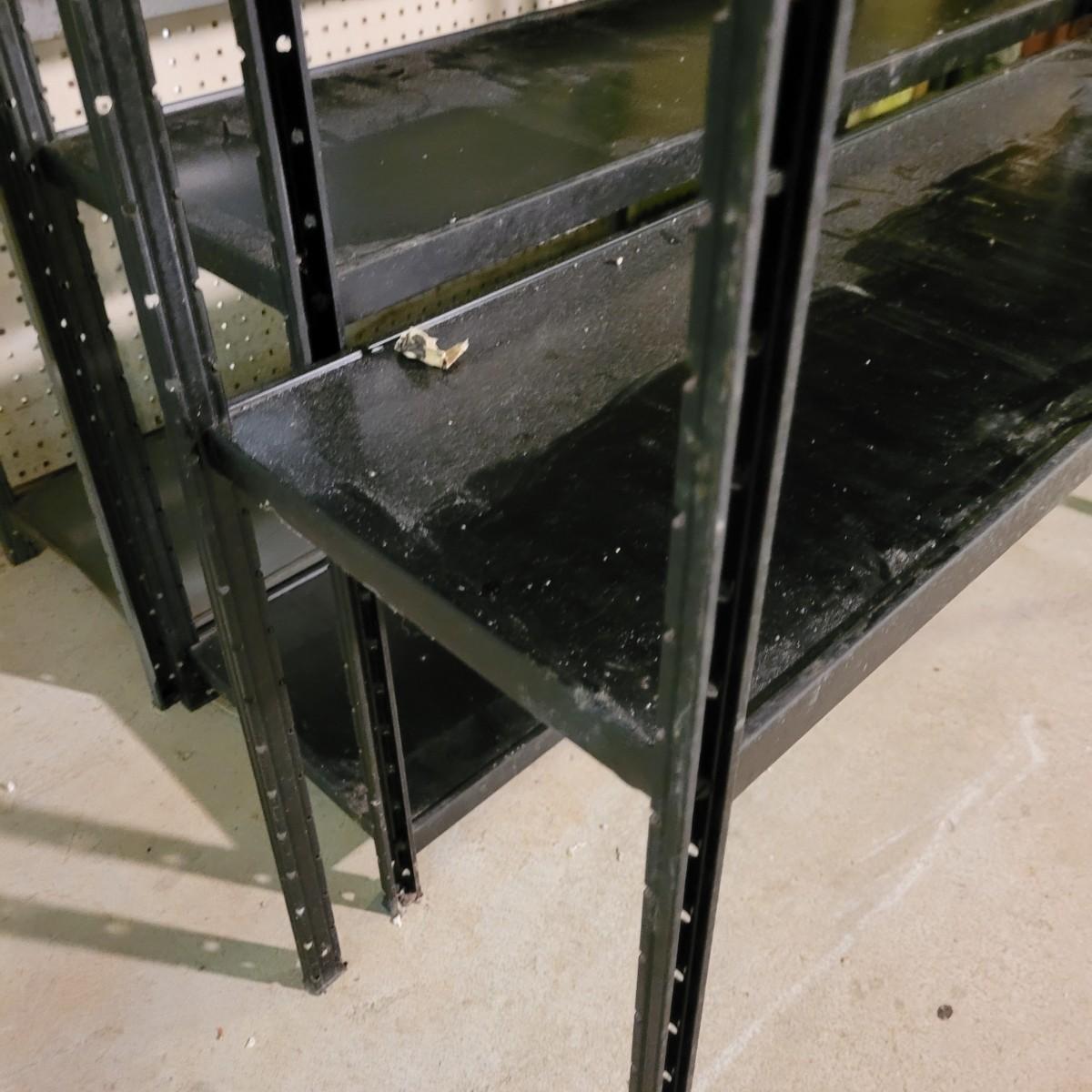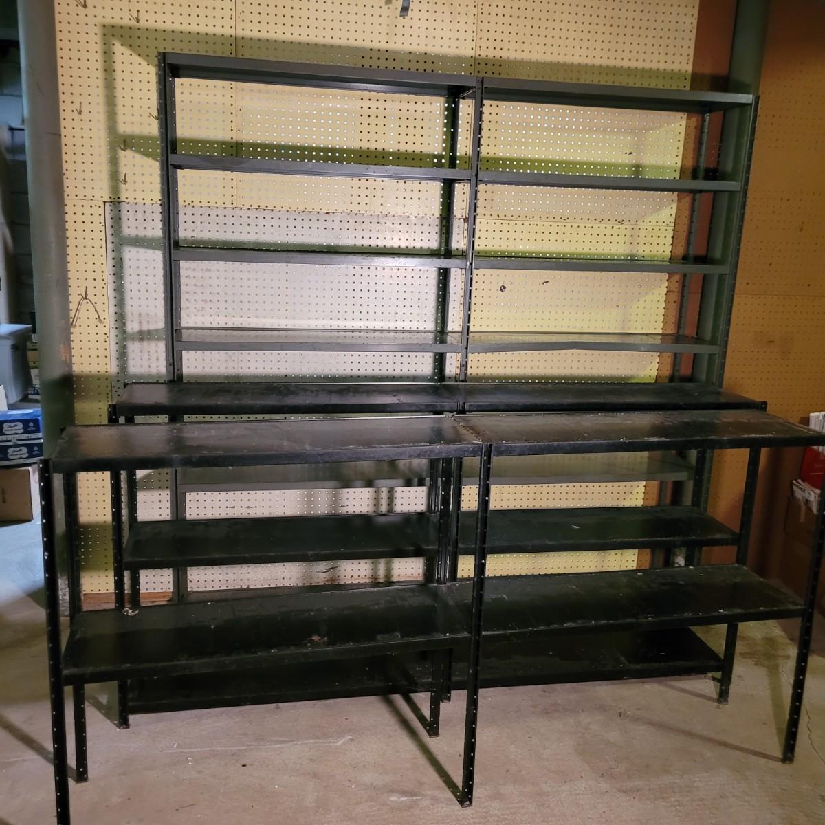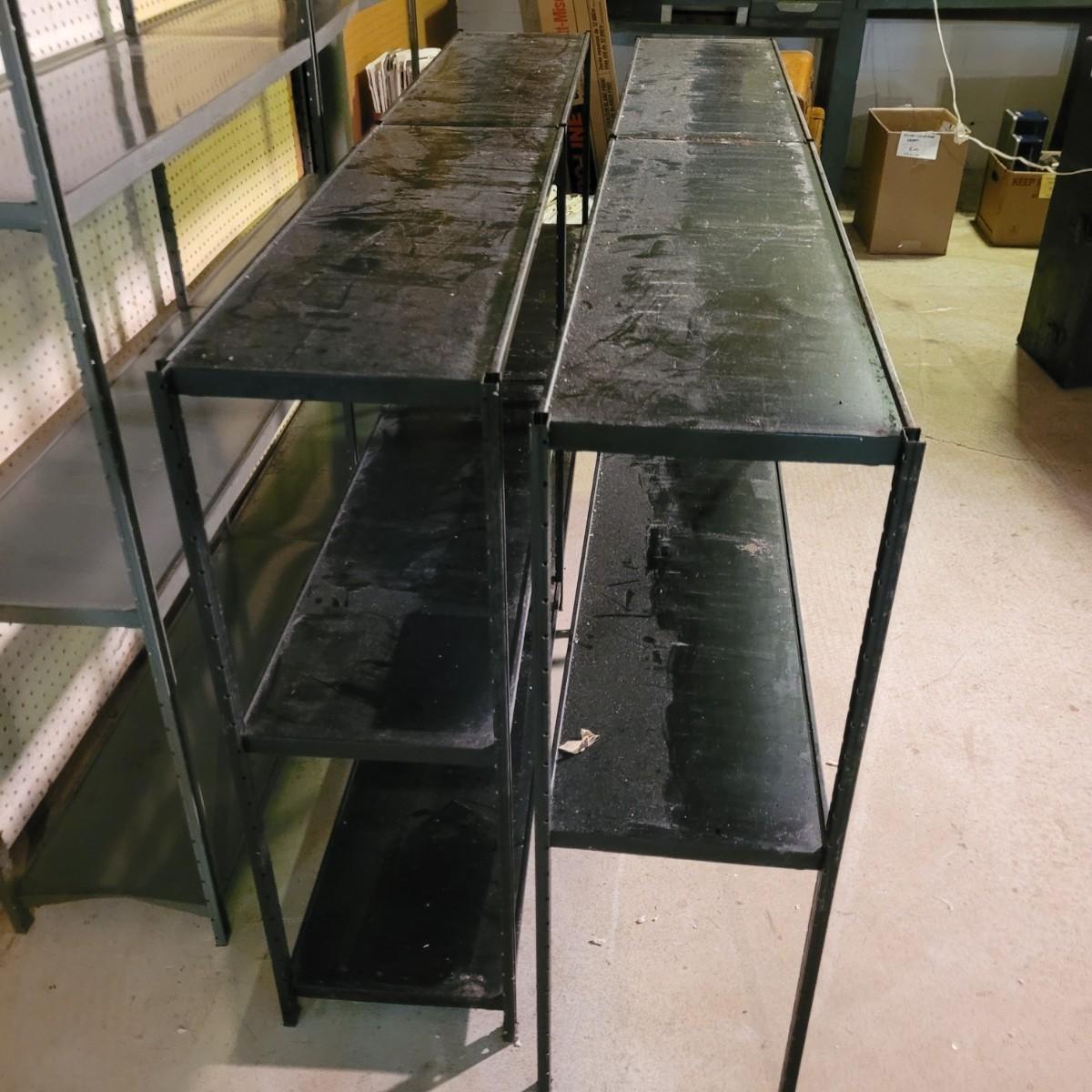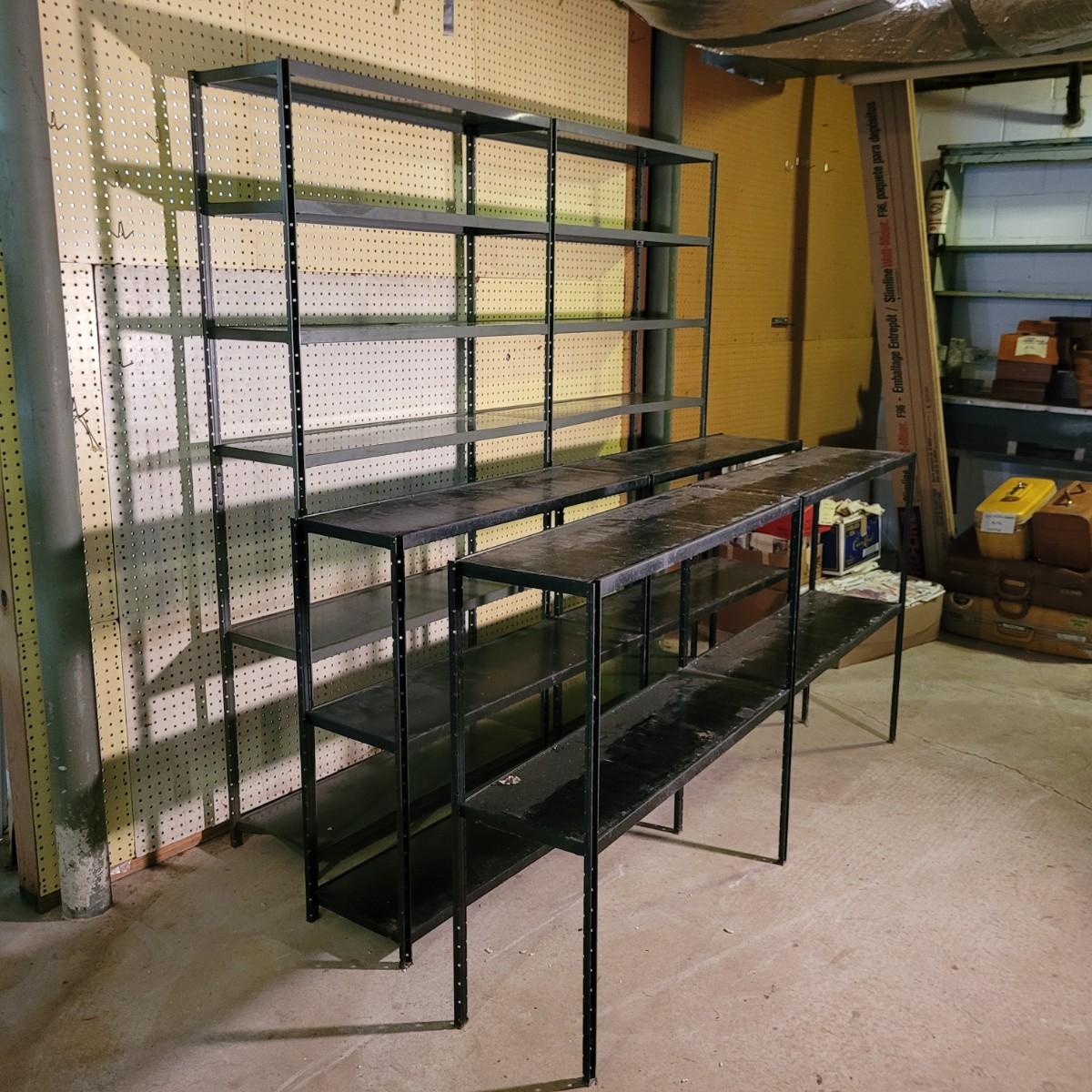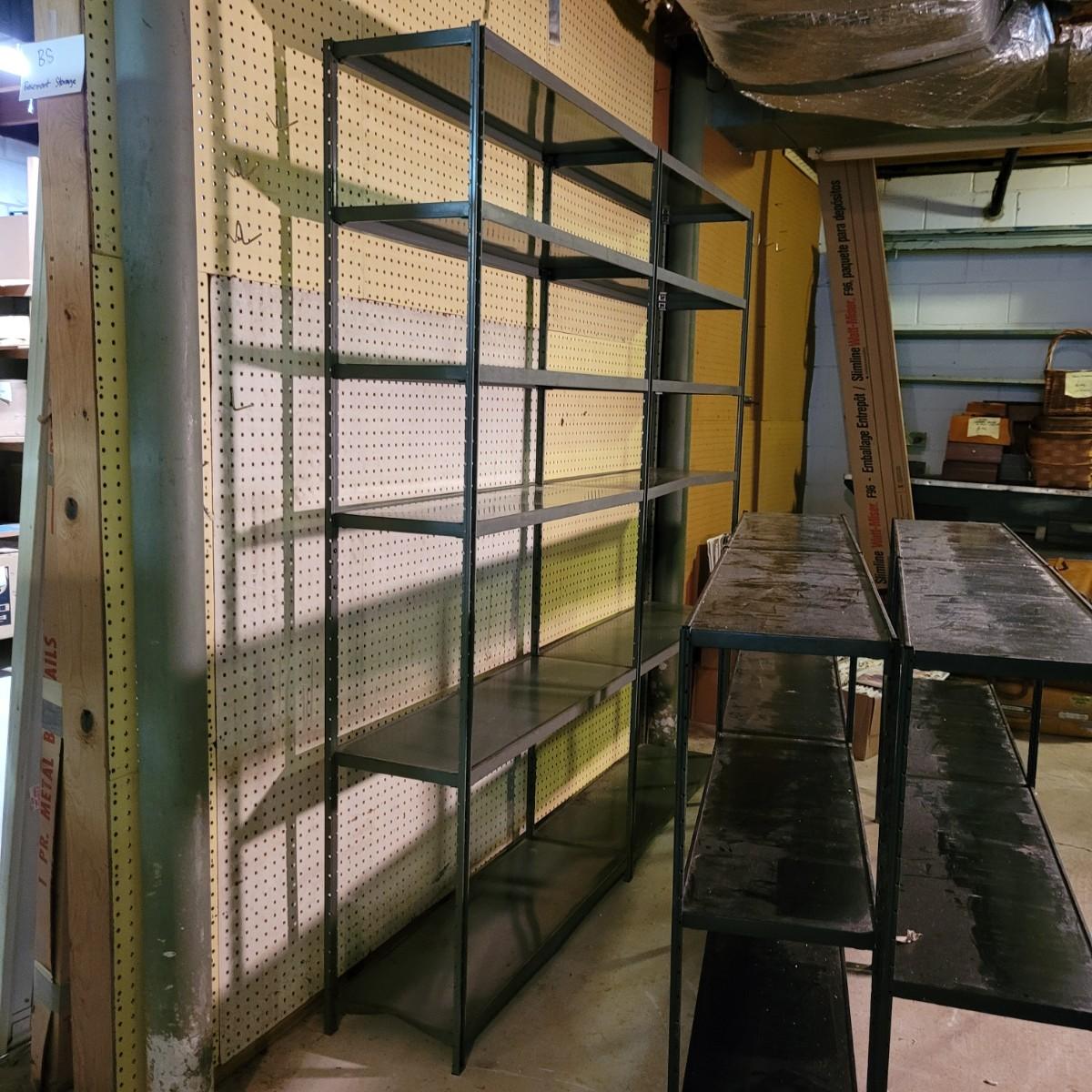 One tall and two shorter wide metal shelves. Taller unit measures approximately 72"L x12"D x71.5"H, shorter units measure approximately 72"L x12"D x36"H. Local pickup only.
