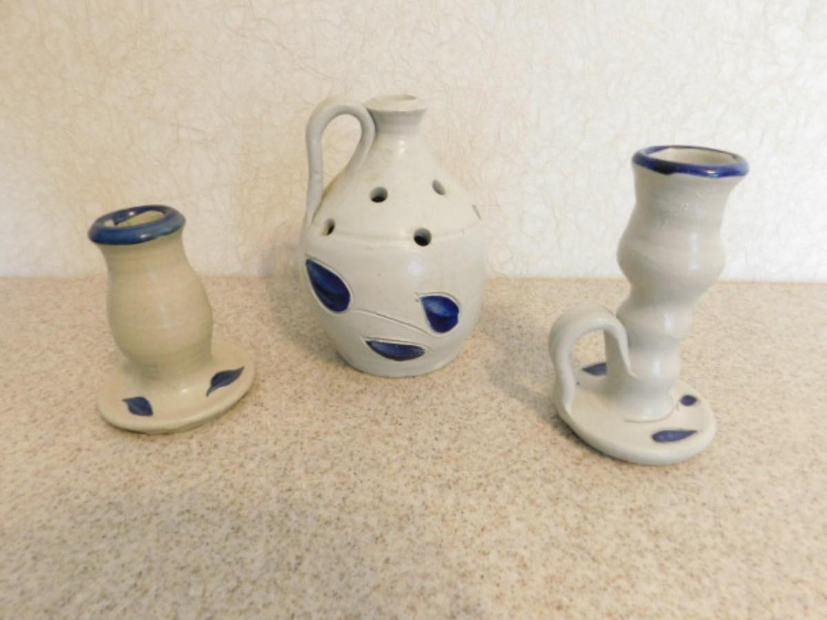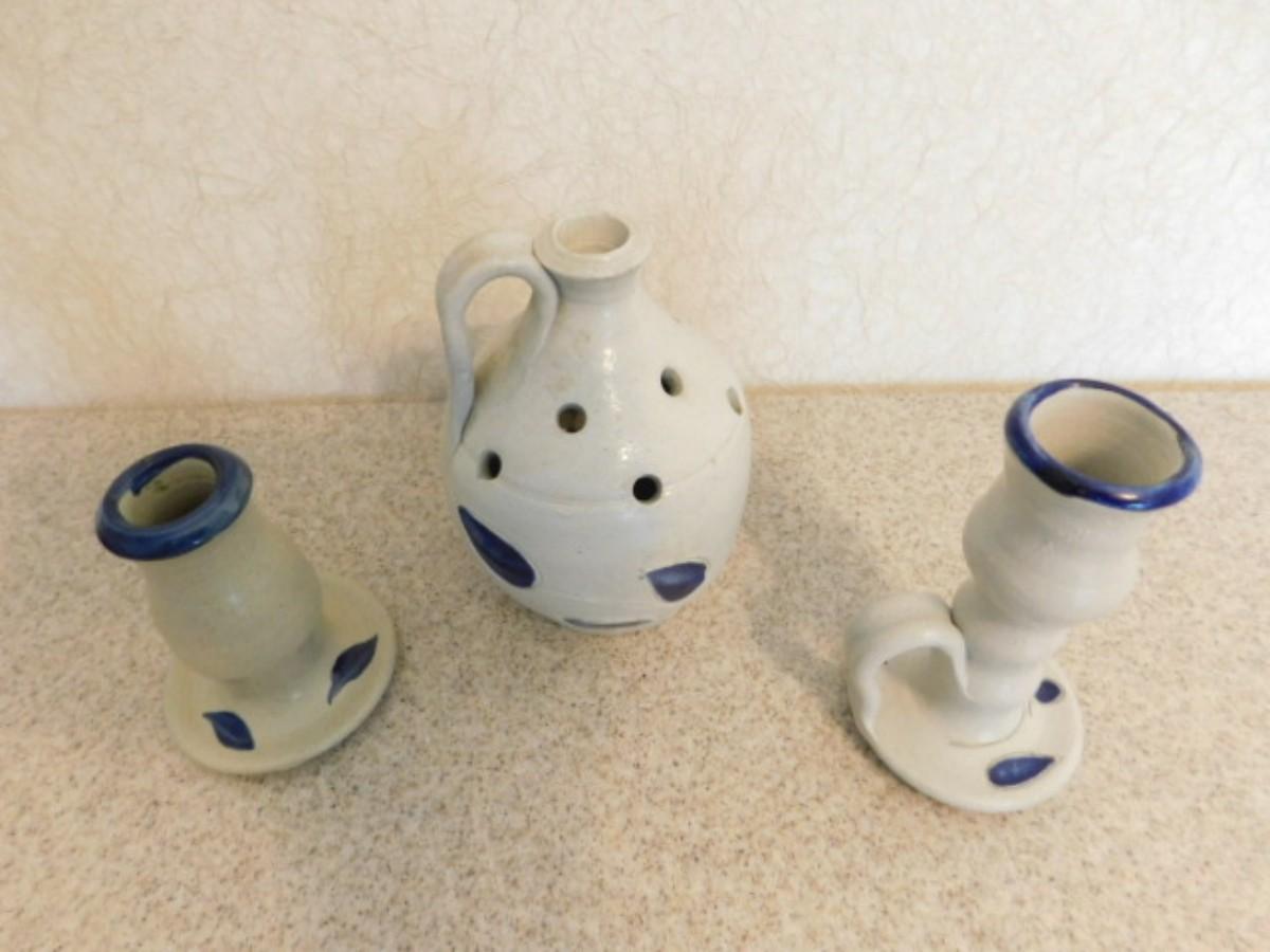 Set of Three Williamsburg Pottery Candle Holders