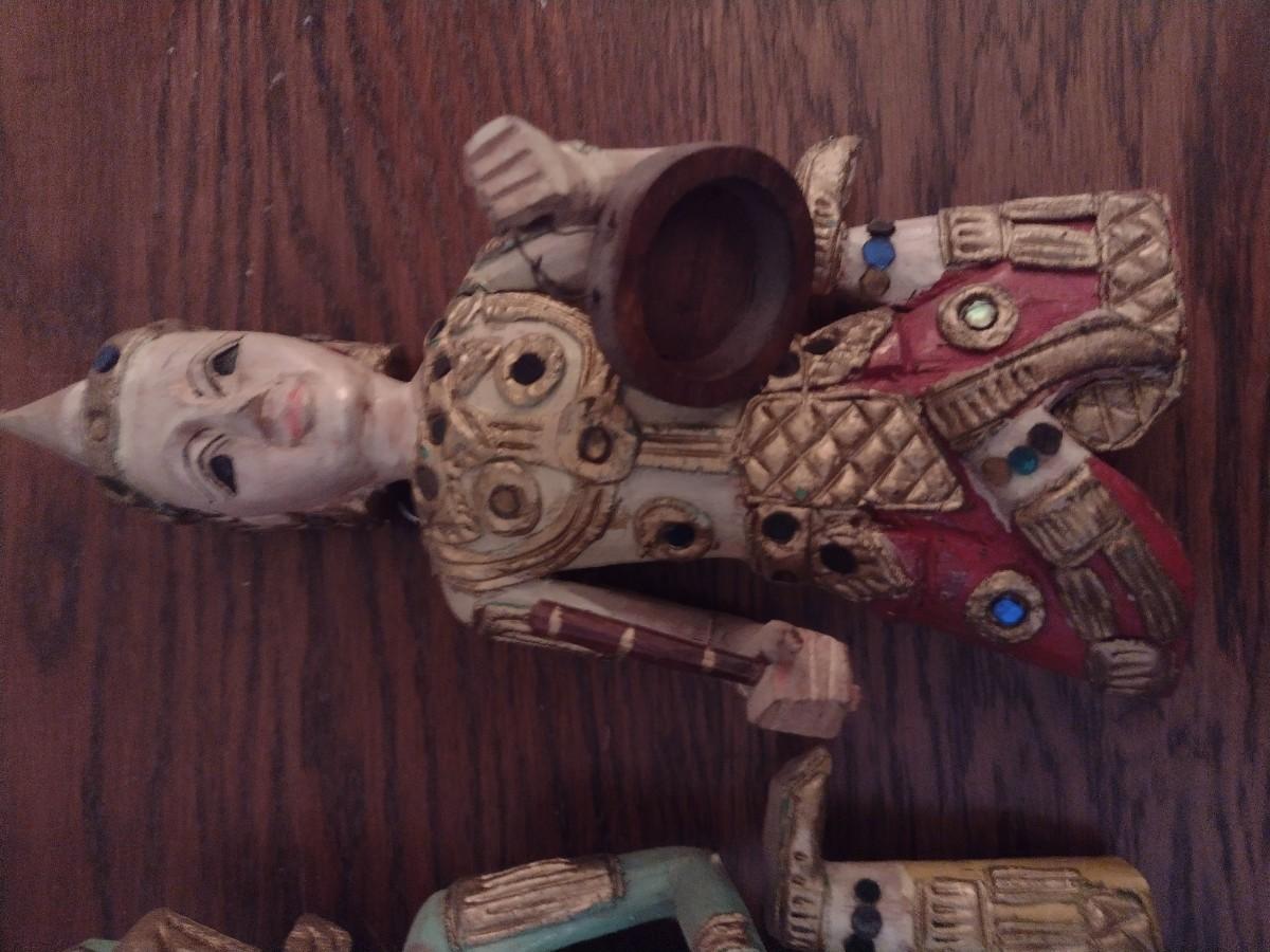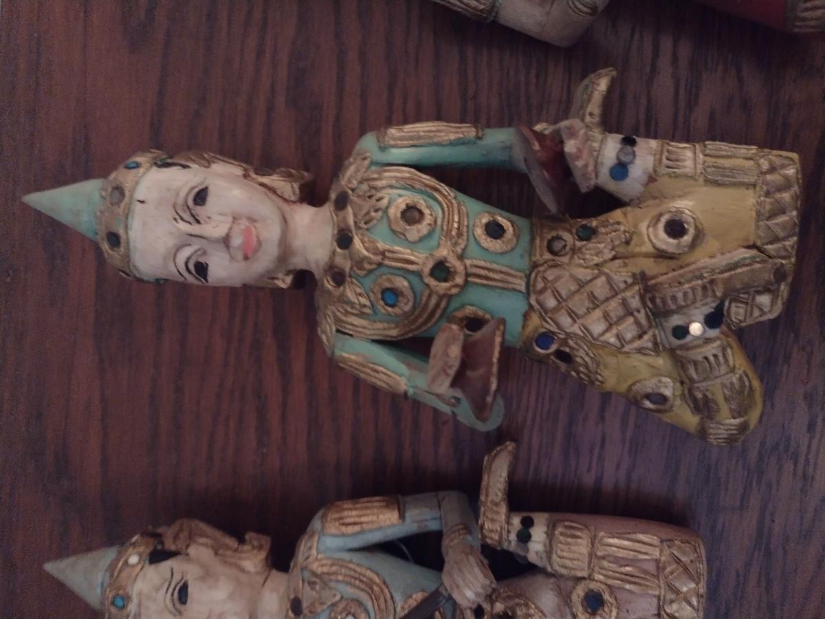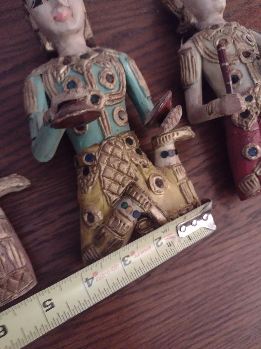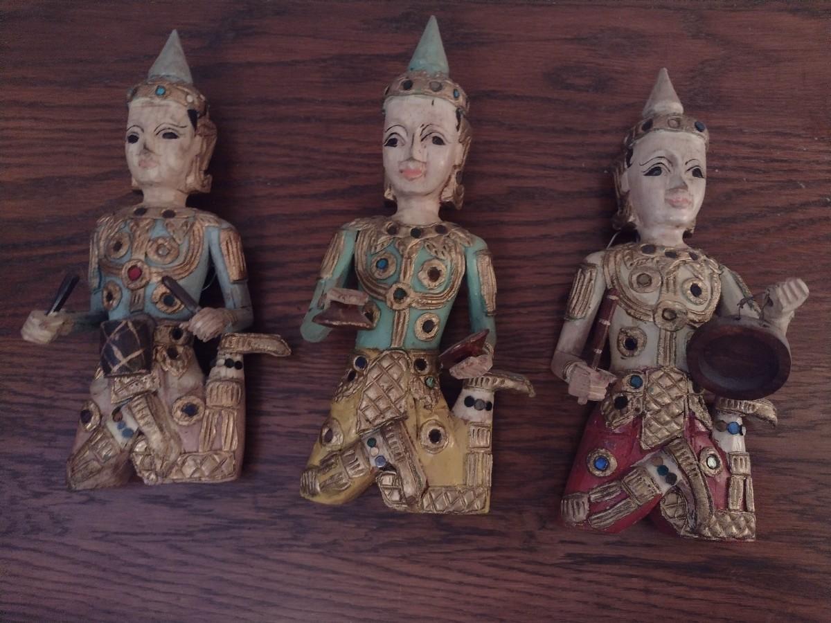 Set of Three Wood Carved Thai Indonesian Musician Figurines