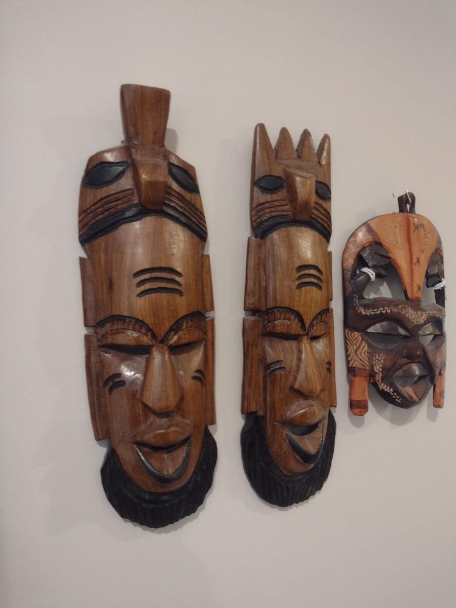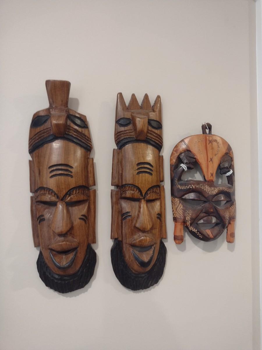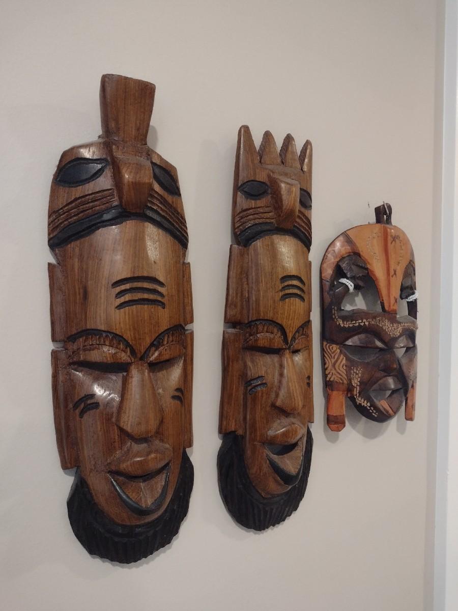 Set of Three Wood Carved Tribal Face Masks