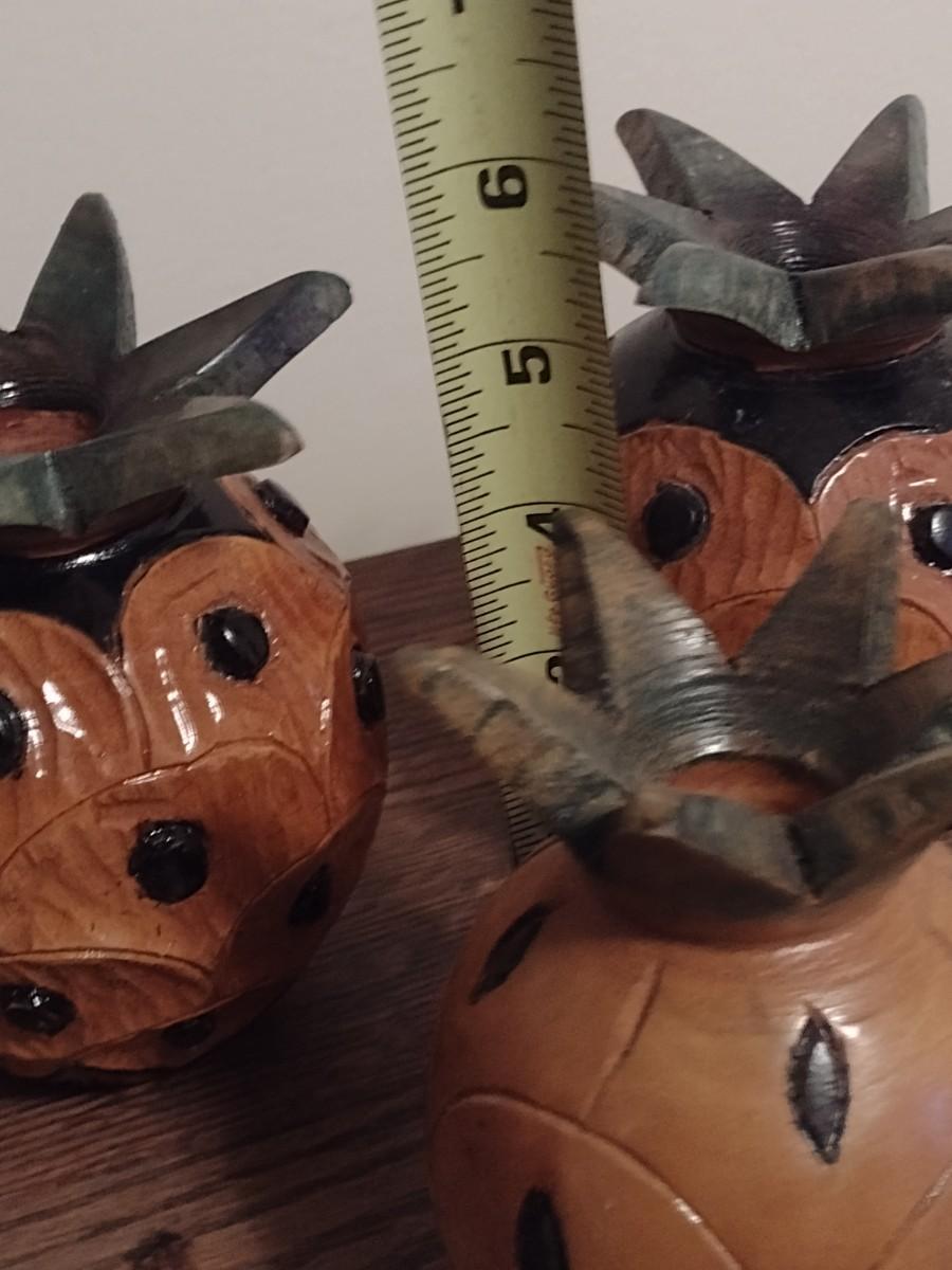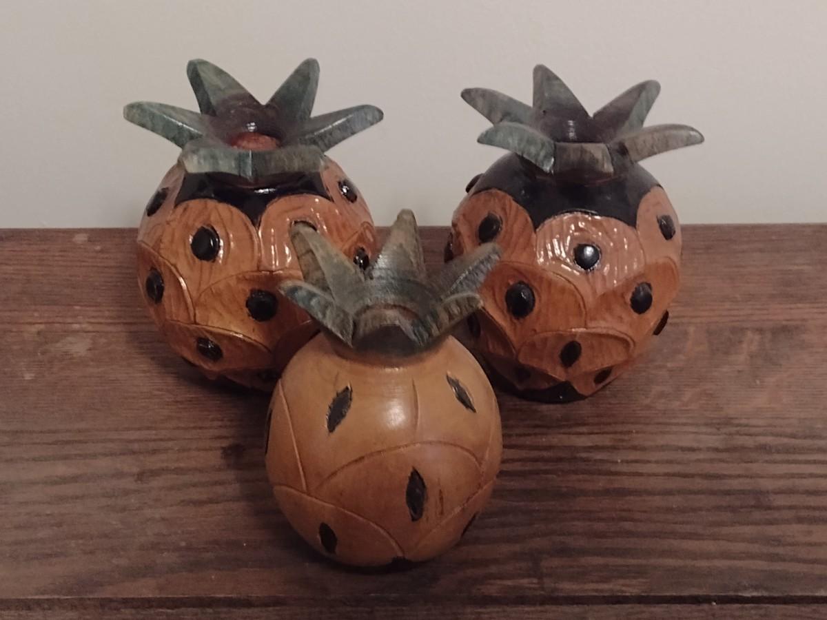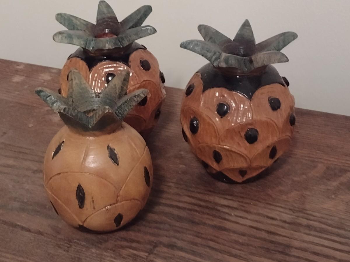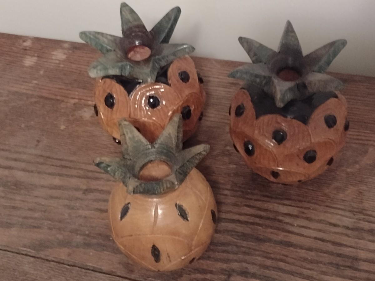 Set of Three Wood Carved Pineapple Candle Stick Holders
