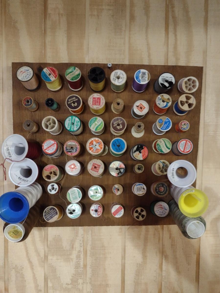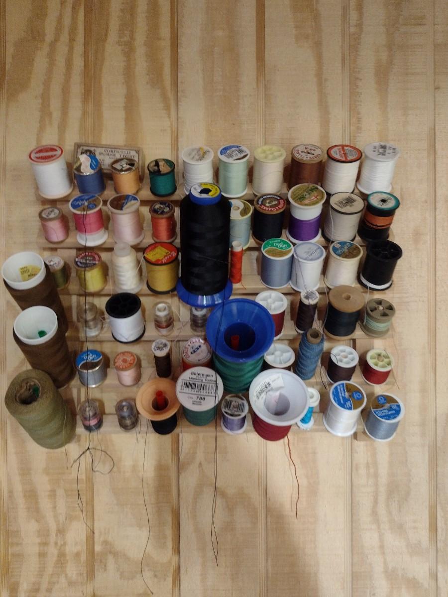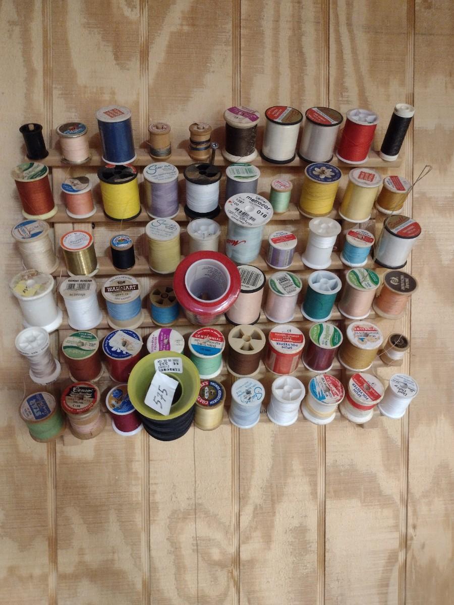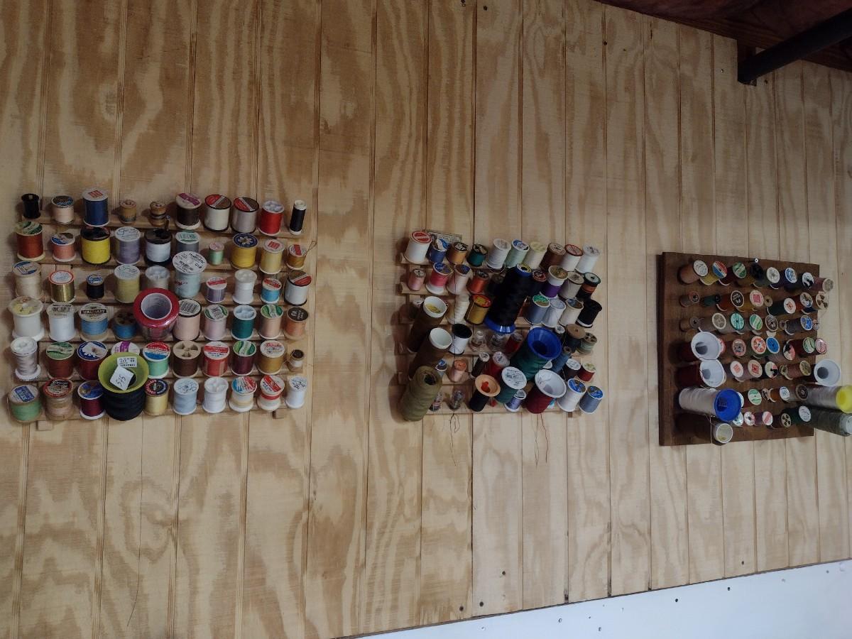 Set of Three Wood Sewing Thread Wall Spindle Racks