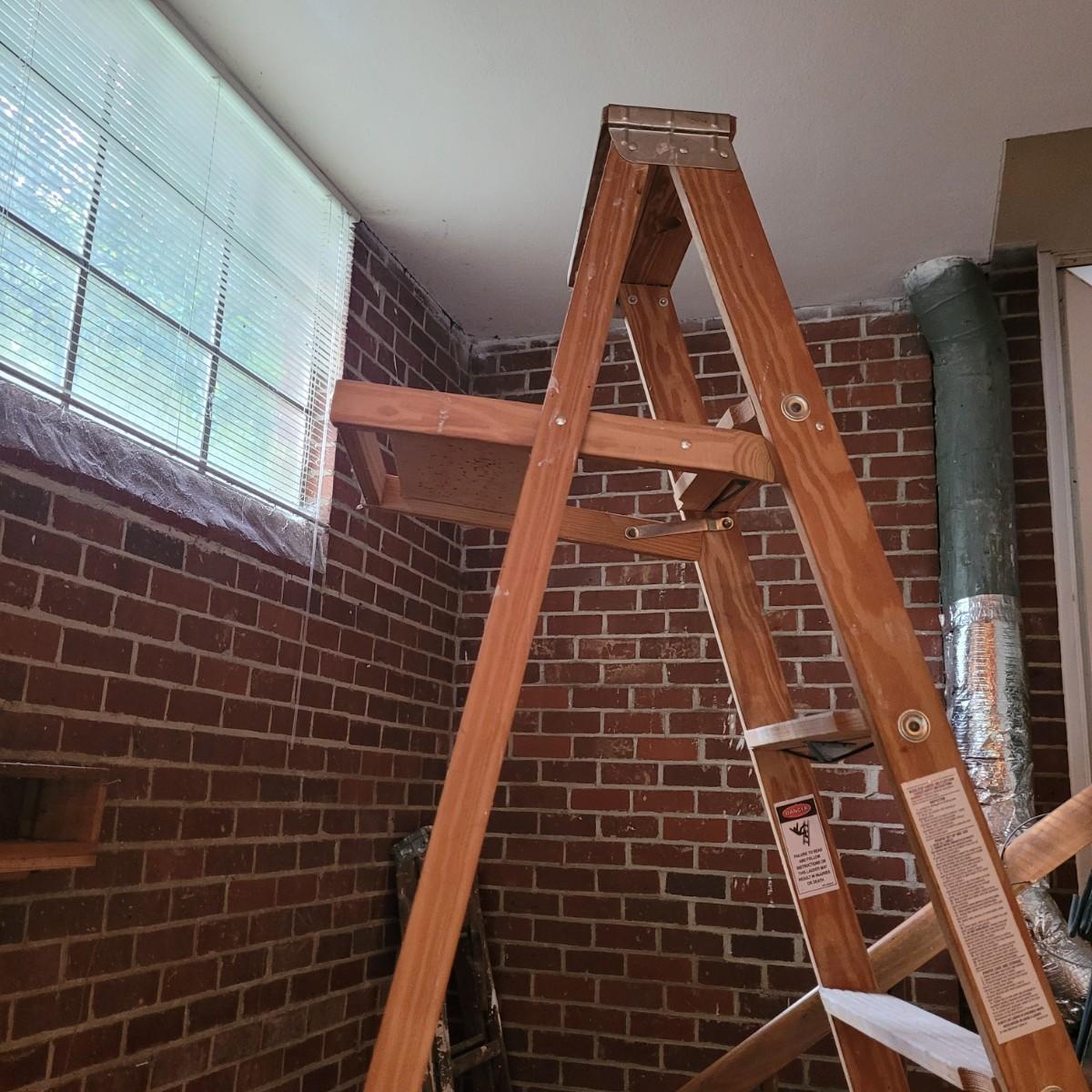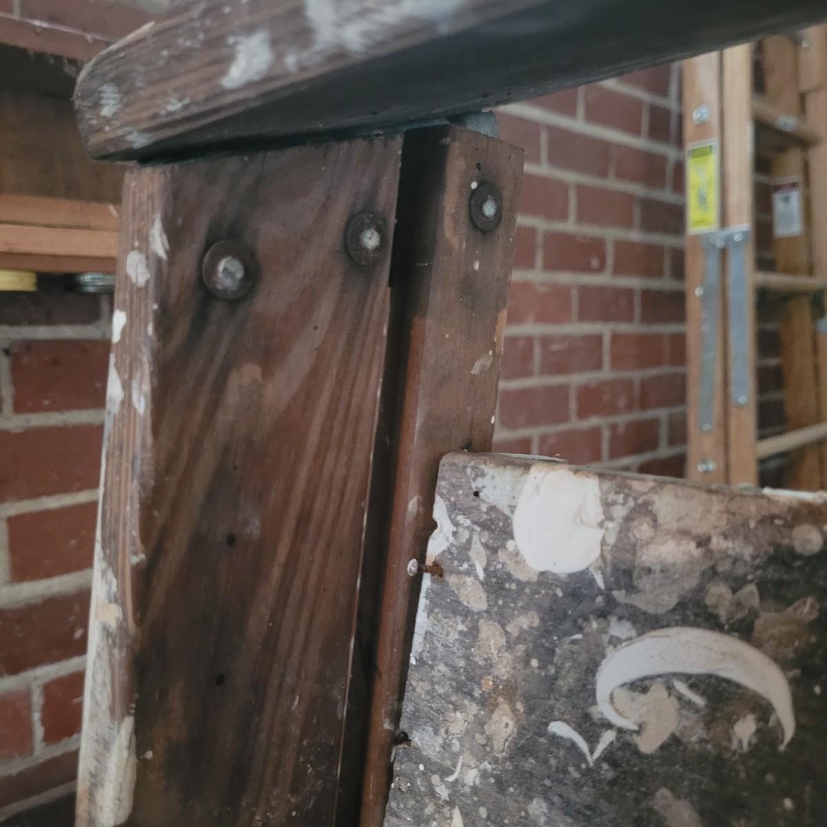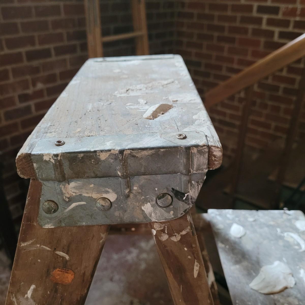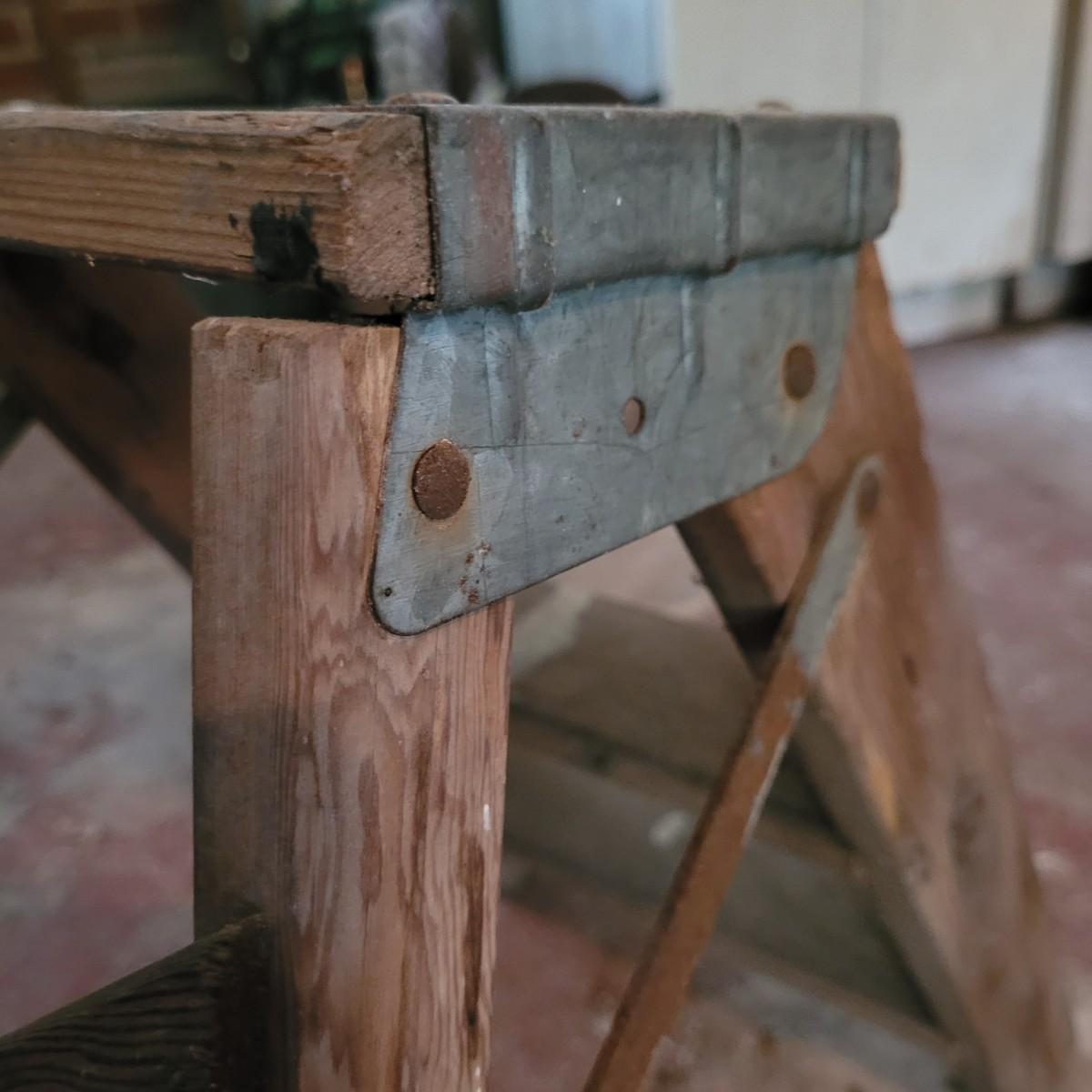 Set of three wooden step ladders, various heights. Tall 8ft. ladder is made by Werner with a load capacity of 225 lbs. No rusting, wood is in good condition with no signs of deterioration. Closed it measures approximately 25.5"L x5"D x96"H and open it measures approximately 91"H, base 51.5"L. Medium ladder has slight rusting around washers but all fastenings appear to be tight and in good condition. Closed it measures approximately 21"L x 5.5"D x60.5" and open it measures approximately 57"H, base 36.5"L. Small ladder slightly wobbles and has damage to wood on front and back. Significant rusting of hardware and fastenings are loose. Closed it measures approximately 13.5"L x5.5"D x24"H and open it measures approximately 20.5"H, base 24"L. Local pickup only.