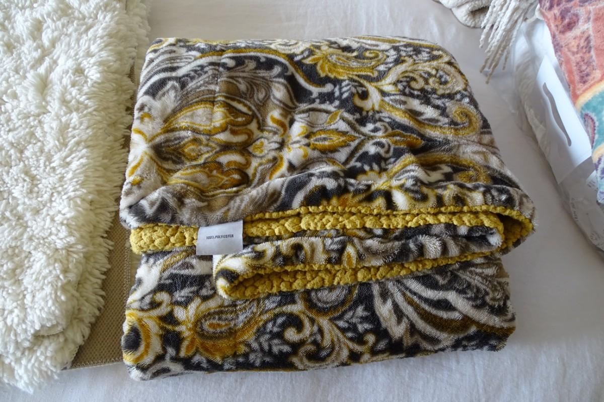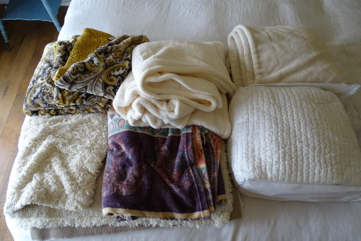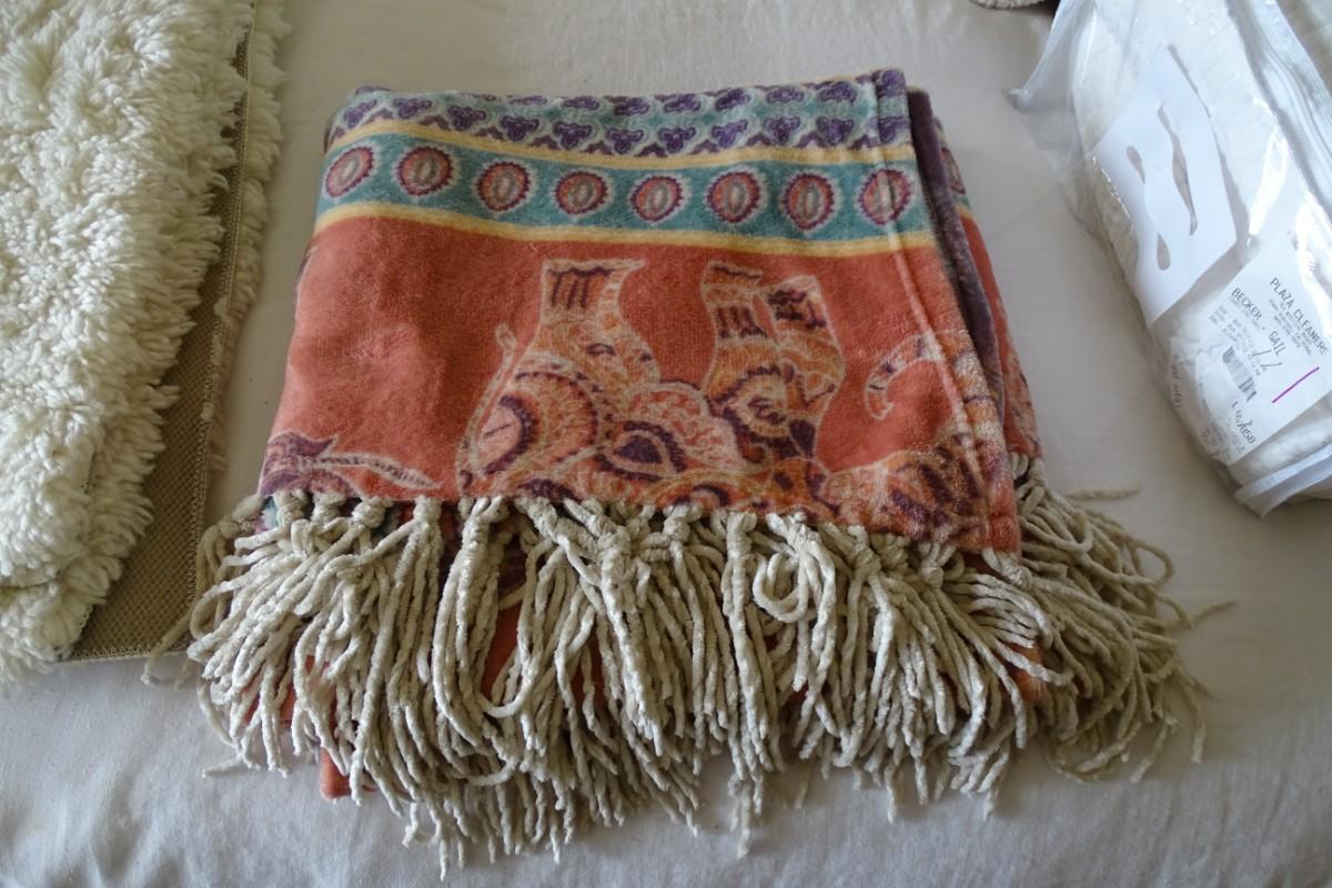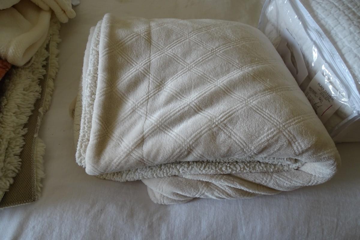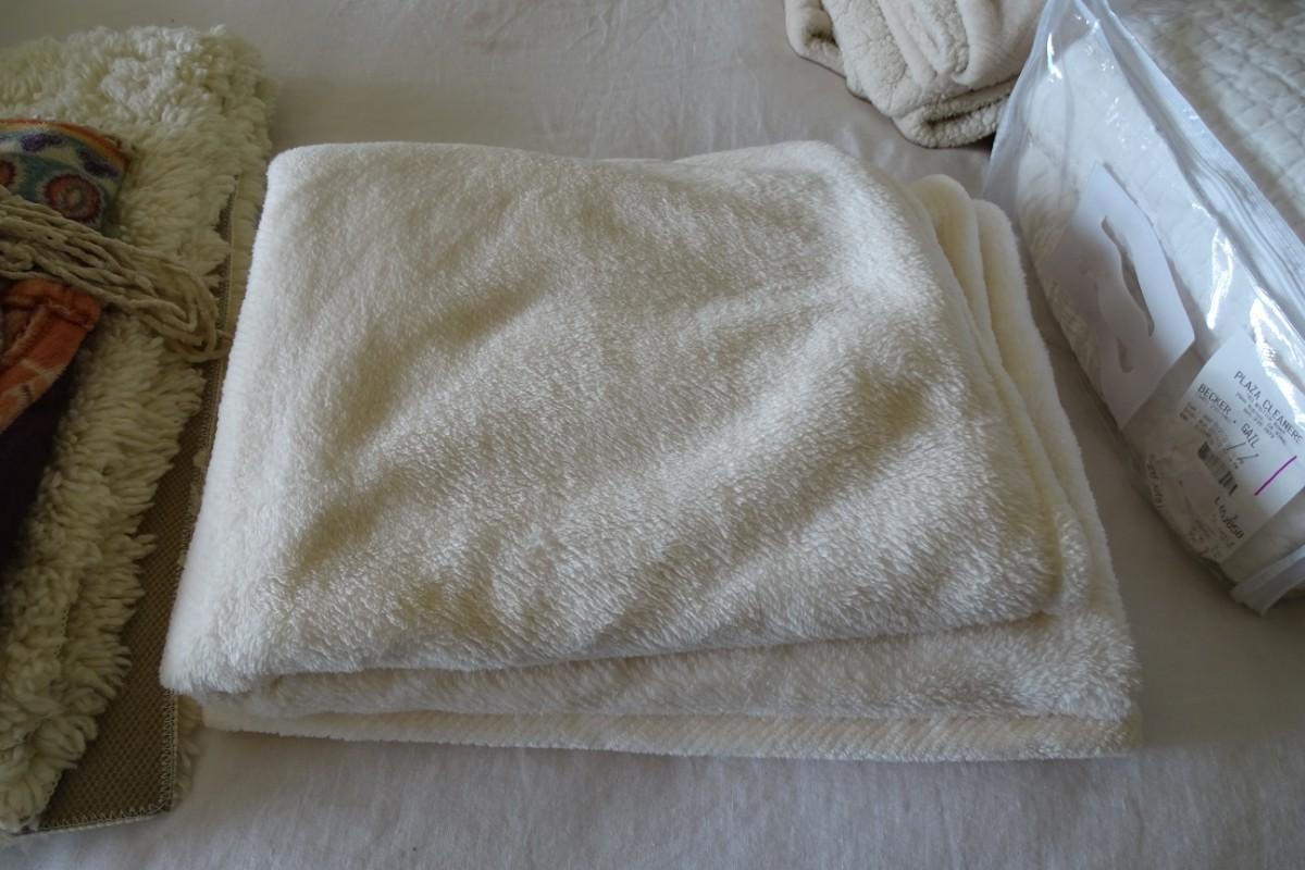 Set of Four Throw Blankets, One Quilt and Two Ivory Shag Rugs