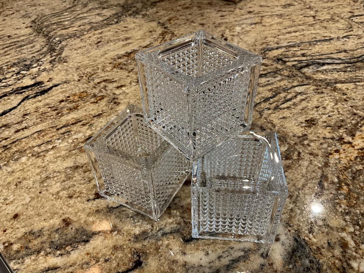 One has a small chip out of the bottom which can be seen in picture. Brand new never been used