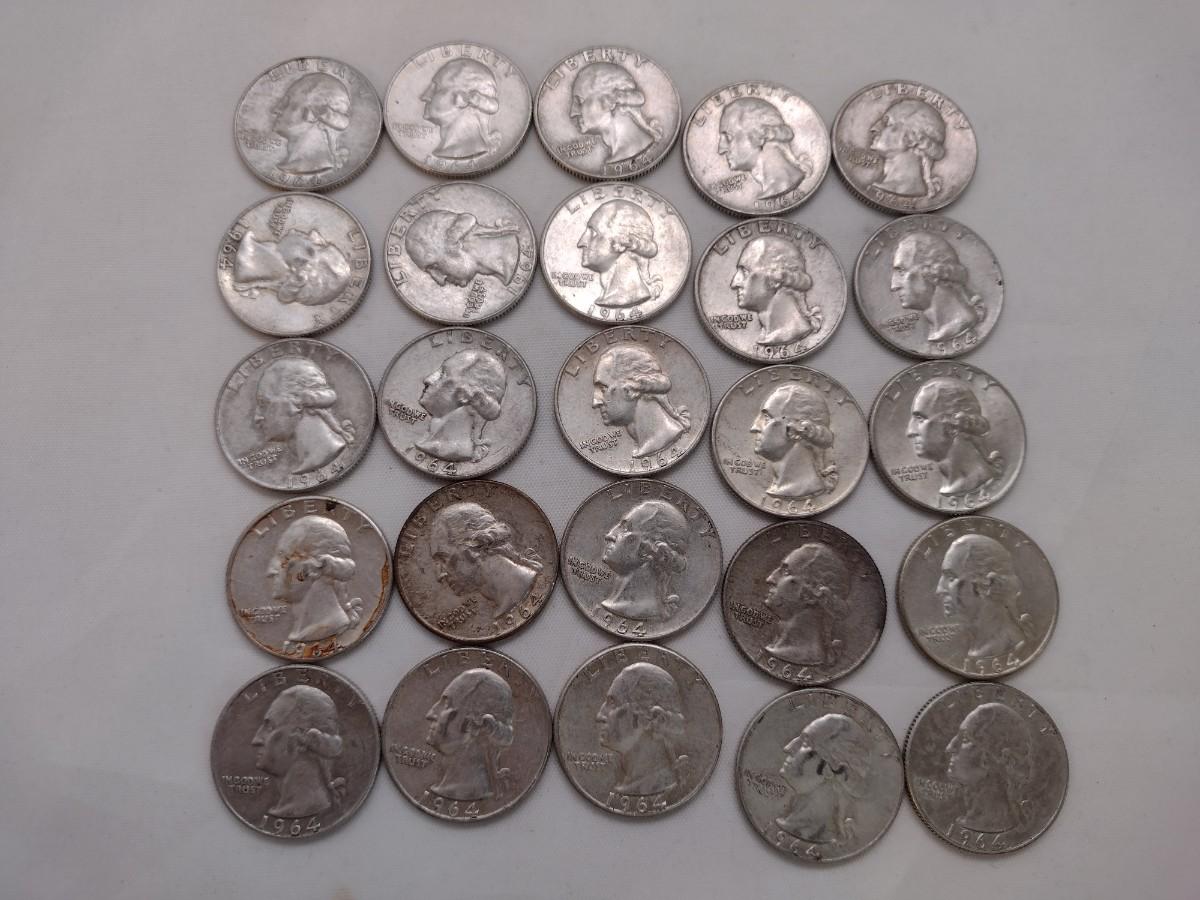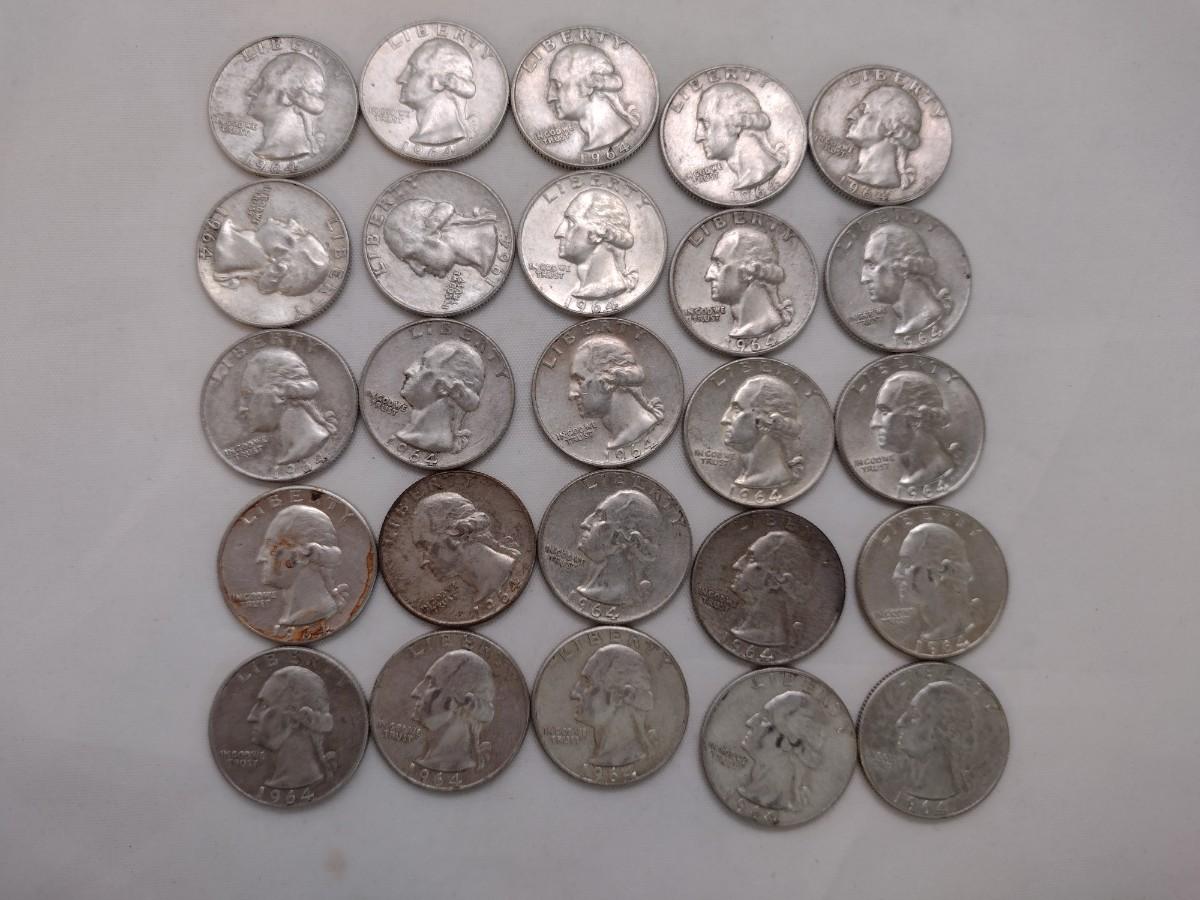Set of Twenty-Five 1964 Silver Washington Quarters Circulated #267