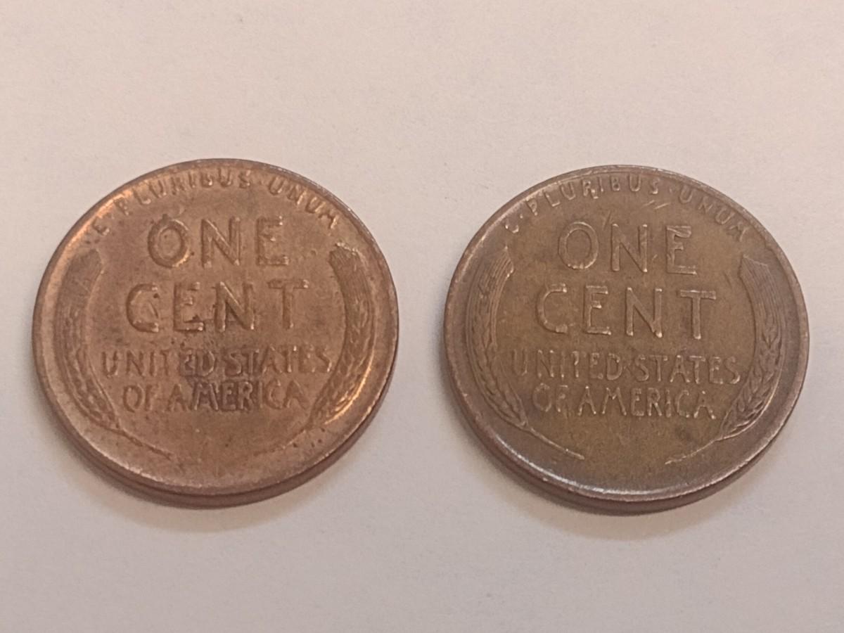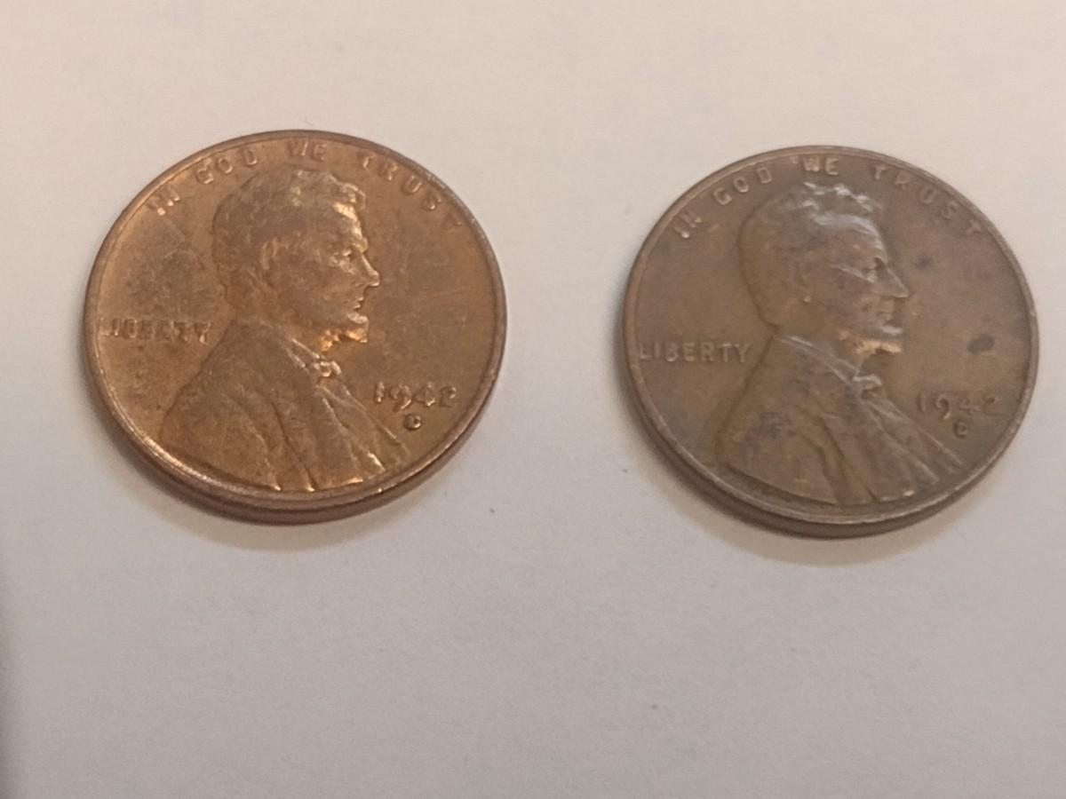 Set of Two 1942-D U. S. Wheat Pennies on with "L" on Rim Error (#106)