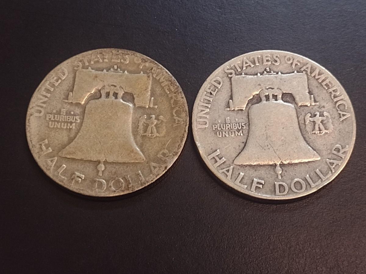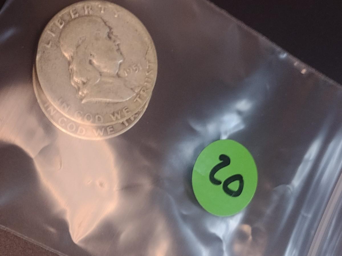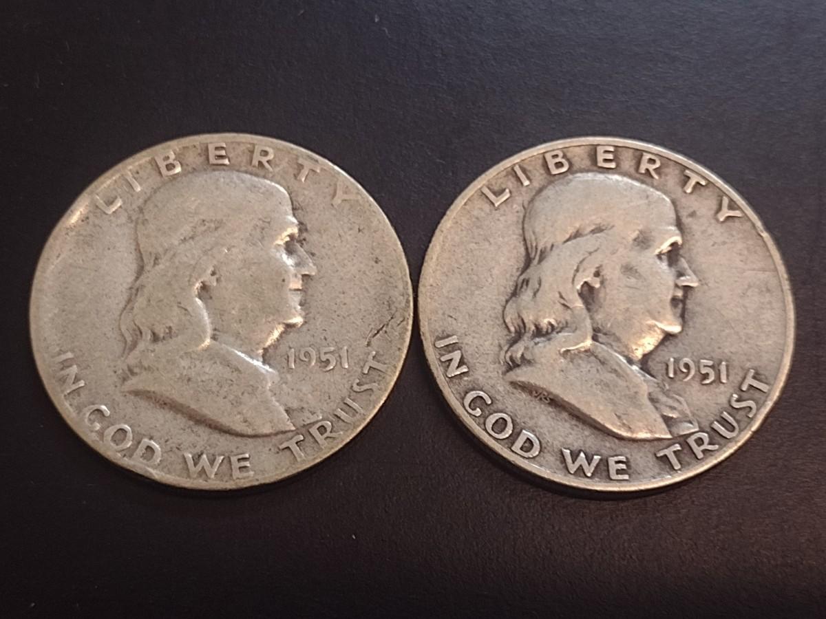 Set of Two 1951-S, U.S. Mint Franklin Silver Half Dollars Circulated (20)