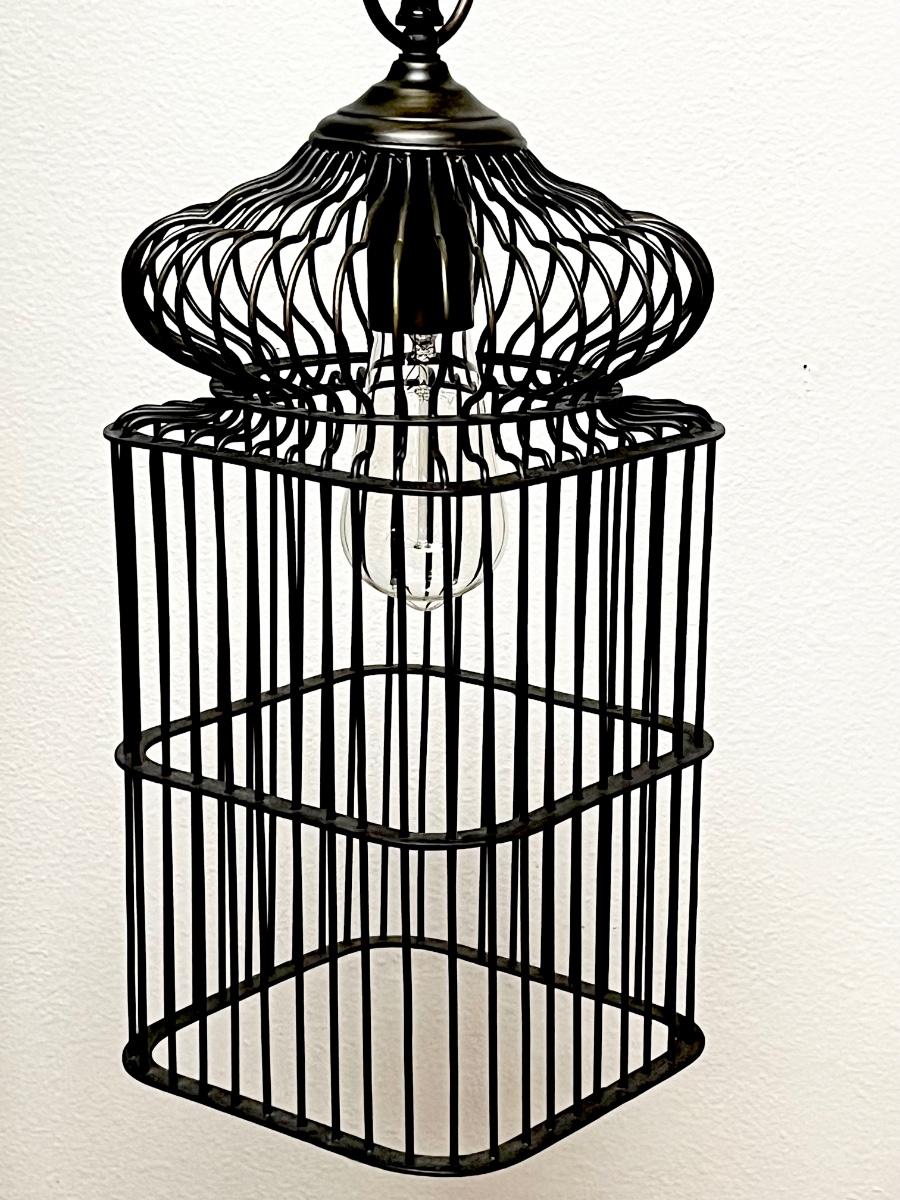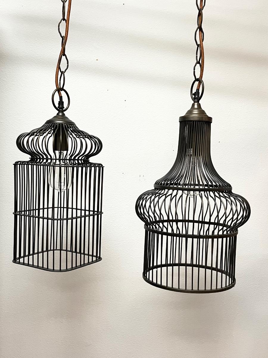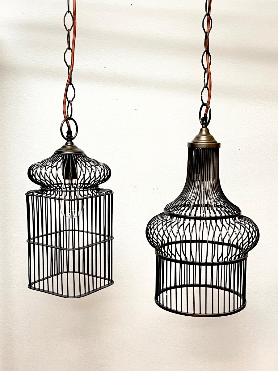 Set Of Two (2) ~ Black Iron Bird Cage Style Chandeliers