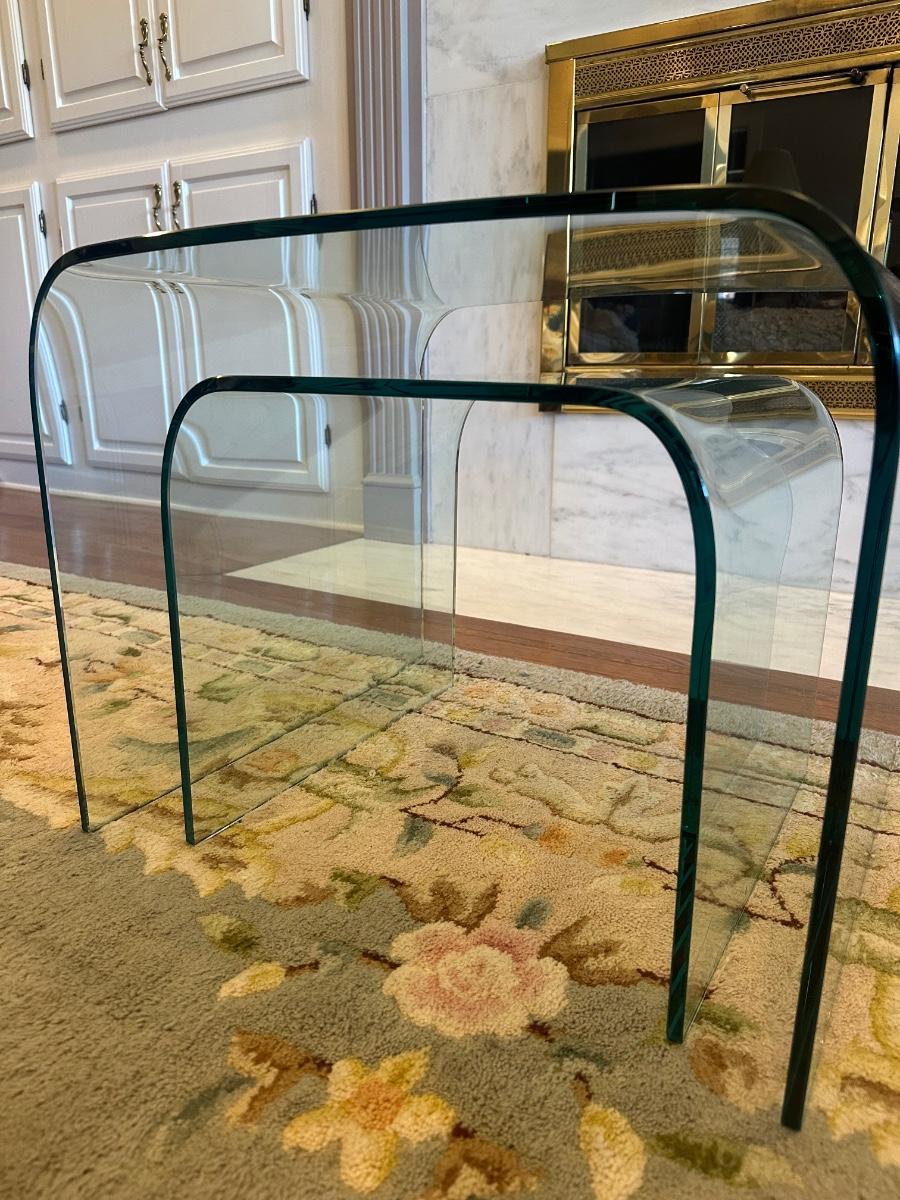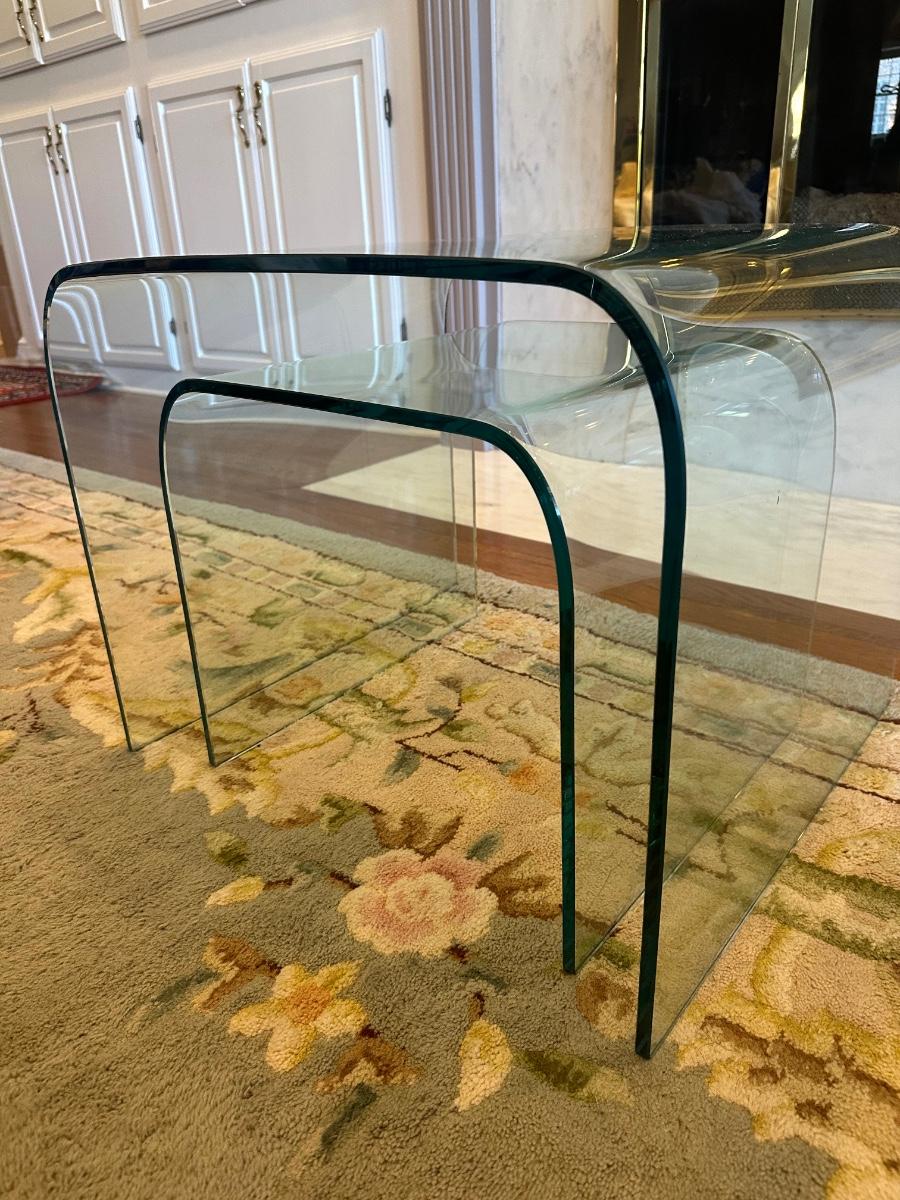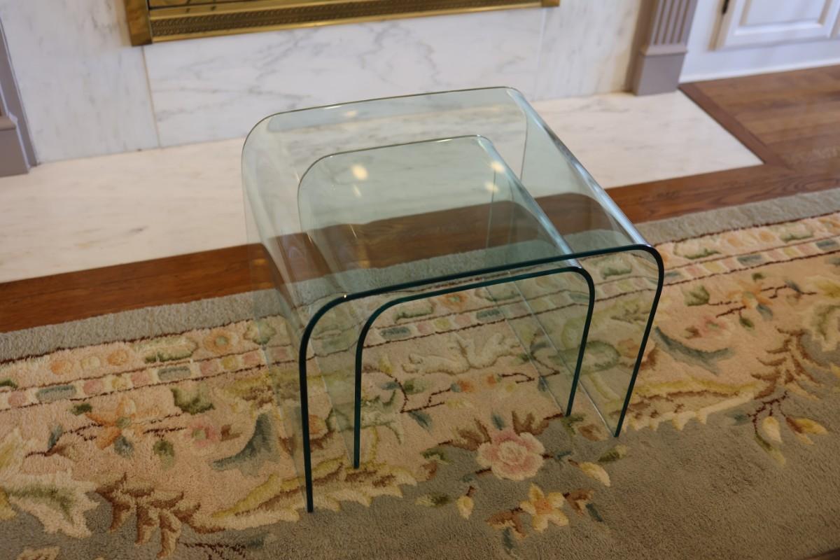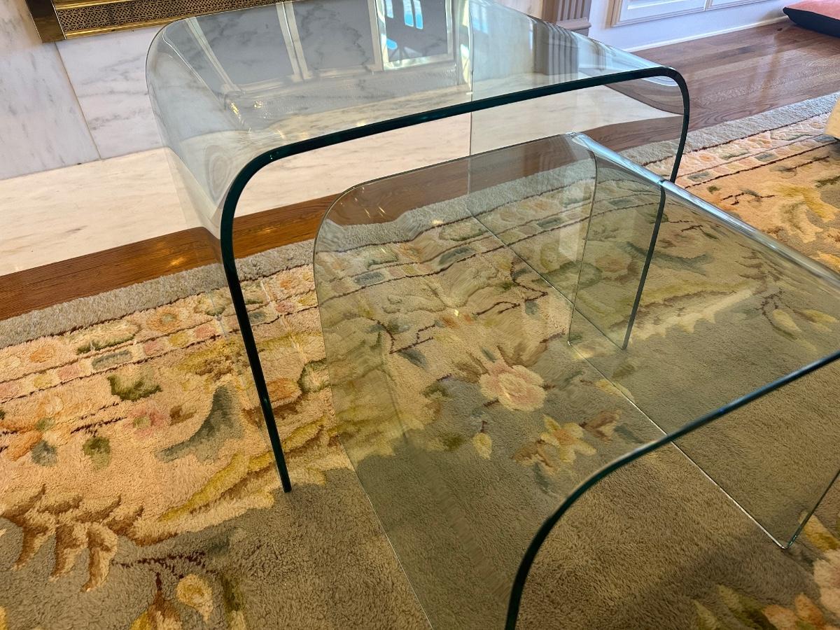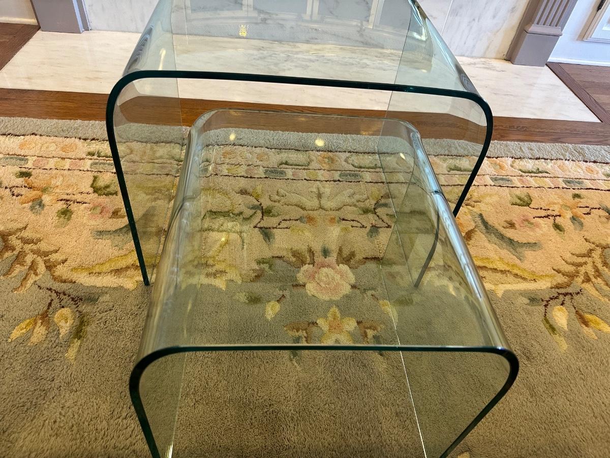 Set of Two (2) Curved Heavy Glass Nesting Side Tables