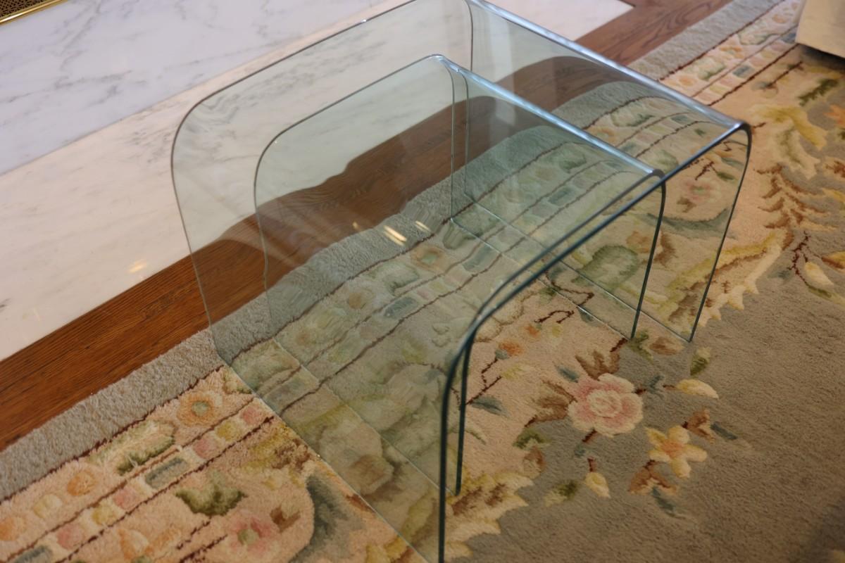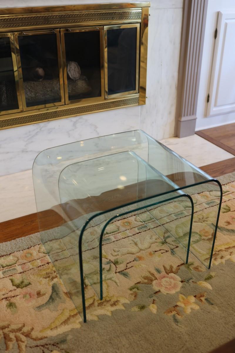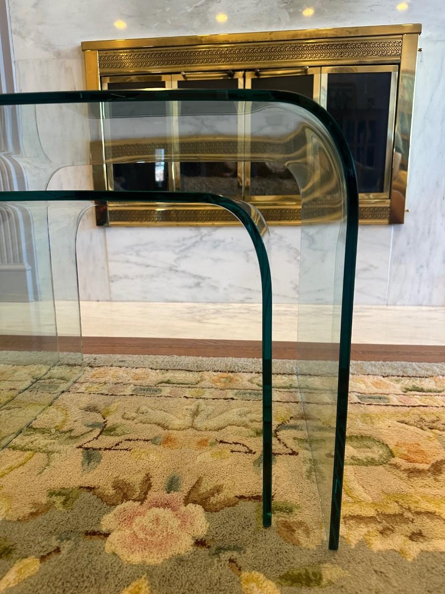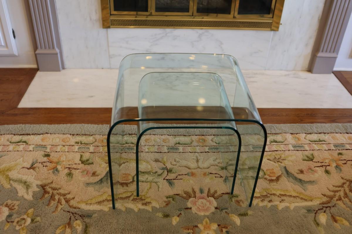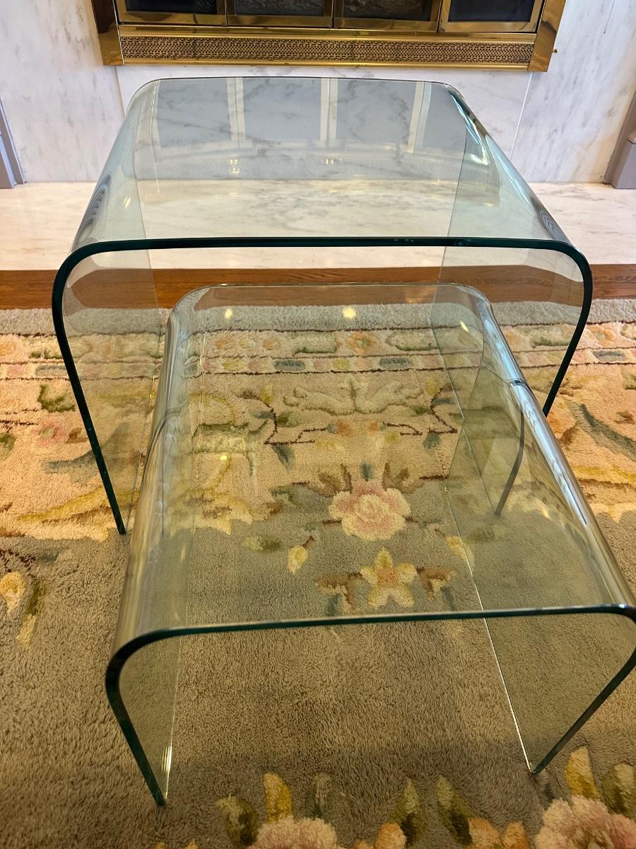 Set of Two (2) Curved Heavy Glass Nesting Side Tables