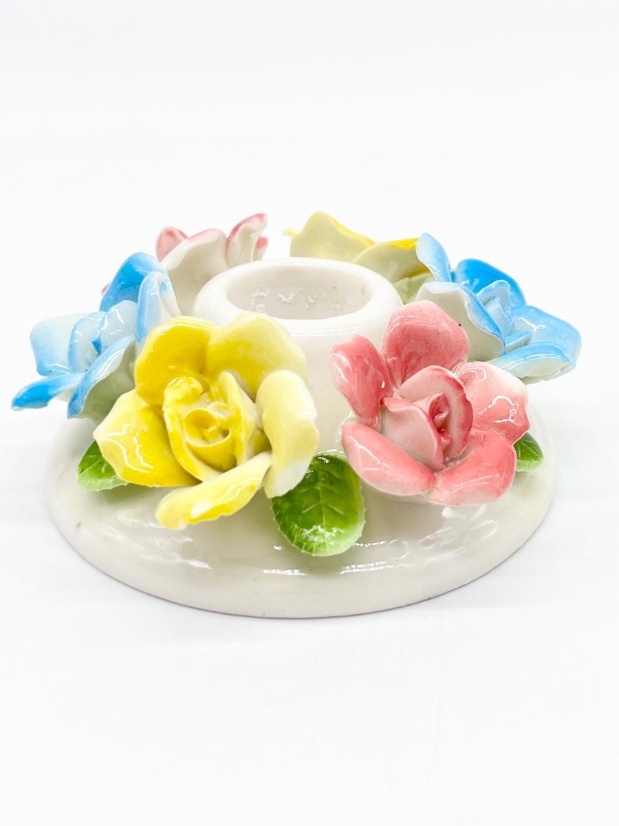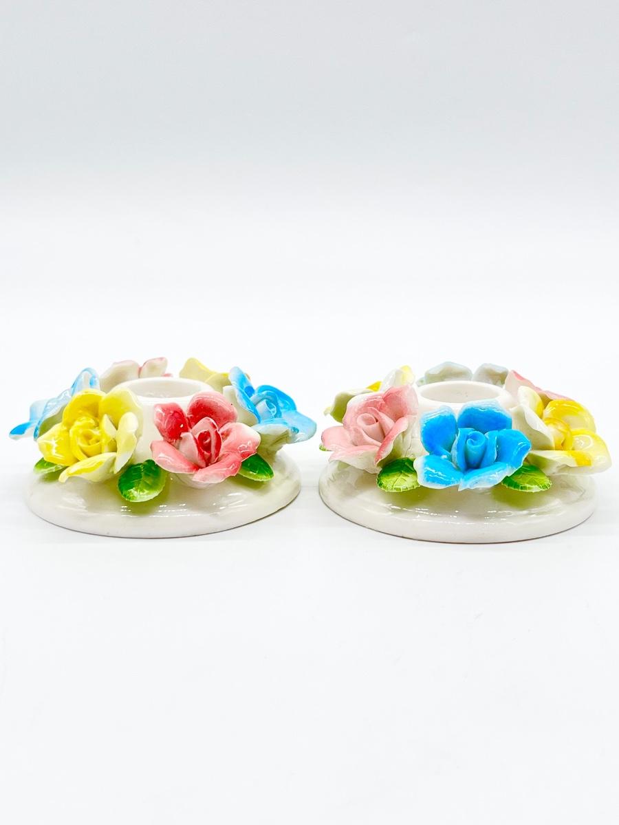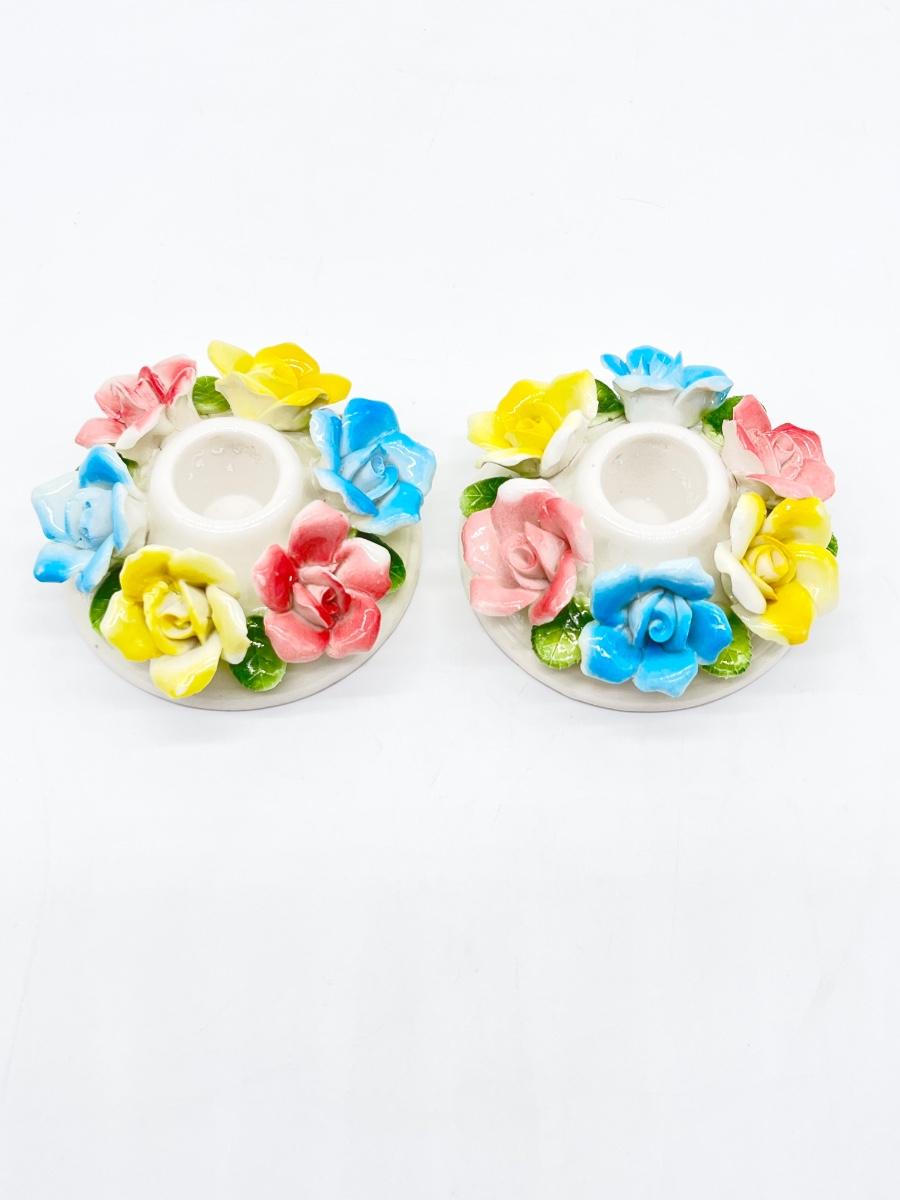 Pair (2) ~ Porcelain Flowers Candle Stick Holders