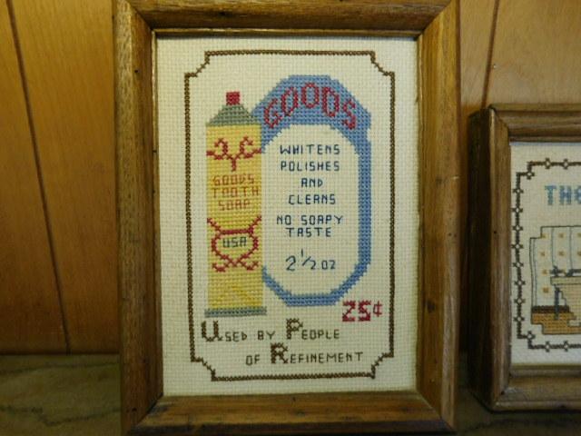 Set of Two Advertisng Needle Work Framed Art
