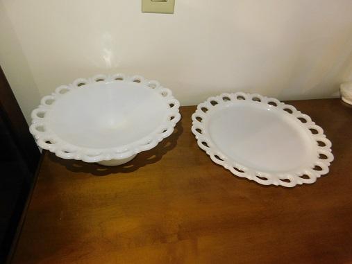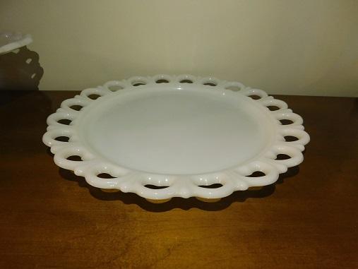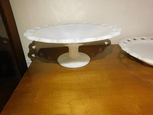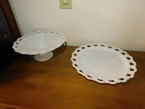 Set of Two Anchor Hocking Lace Edge White Milk Glass Platters