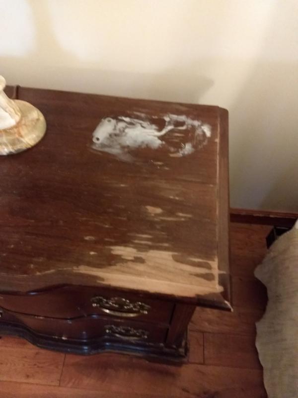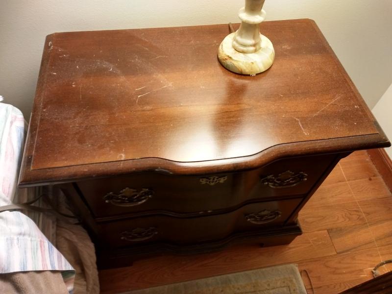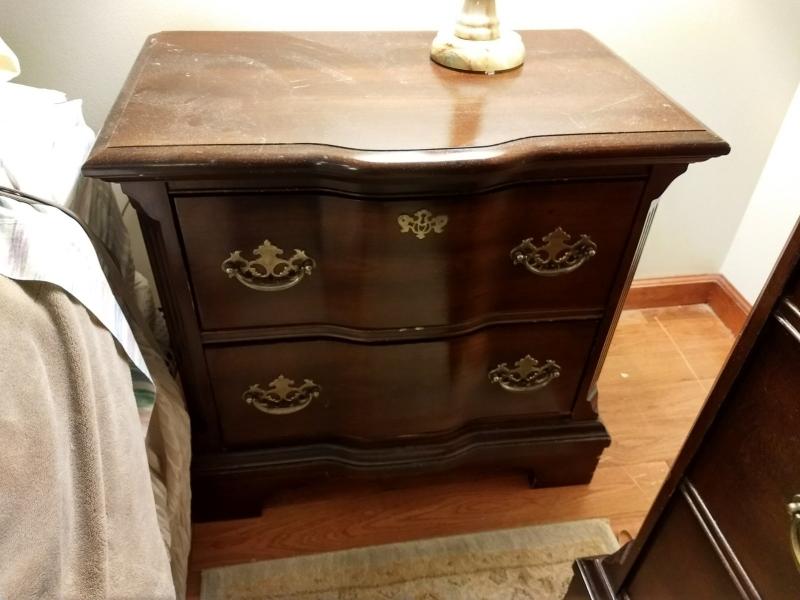 Set of Two Bedside Dressers with Double Drawers one side dresser has considerable markings to the surface.