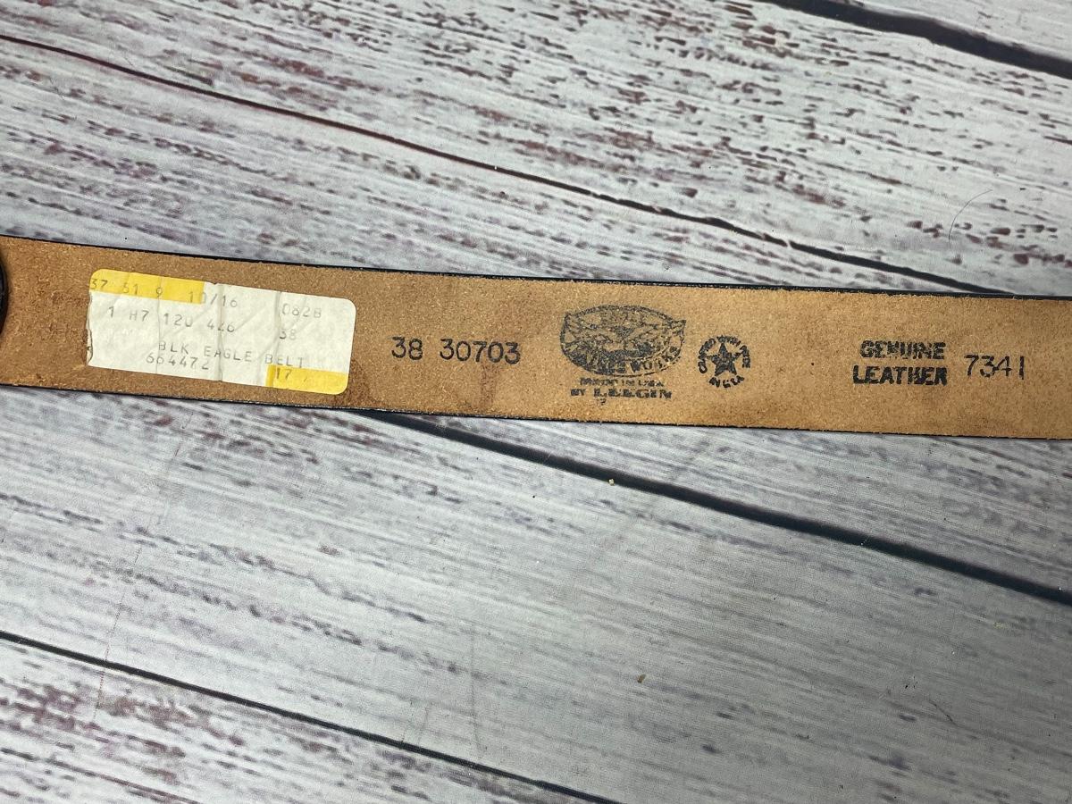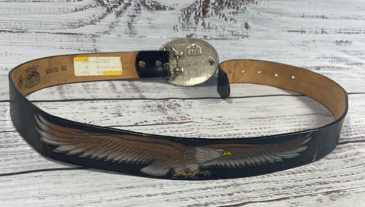 Both items are in decent condition. The North to Alaska belt is a little worn out and discolored. The black eagle belt is also a little worn out but it’s not noticeable. Size 38.