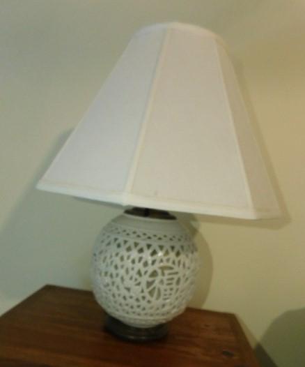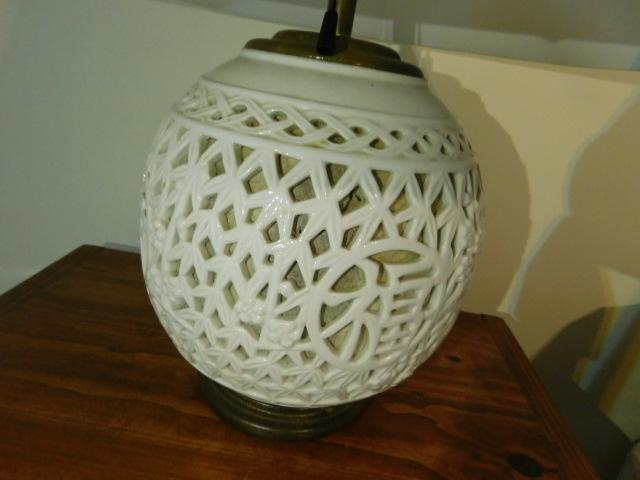 Set of Two Blanc de Chine Asian Style Reticulated Round Belly Table Lamps