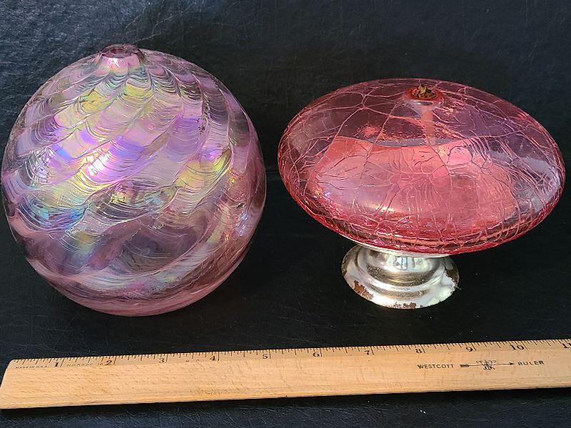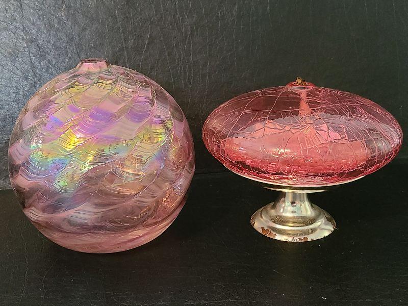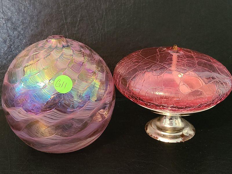 G11: Set Of Two Blown Glass Ball Oil Lamps