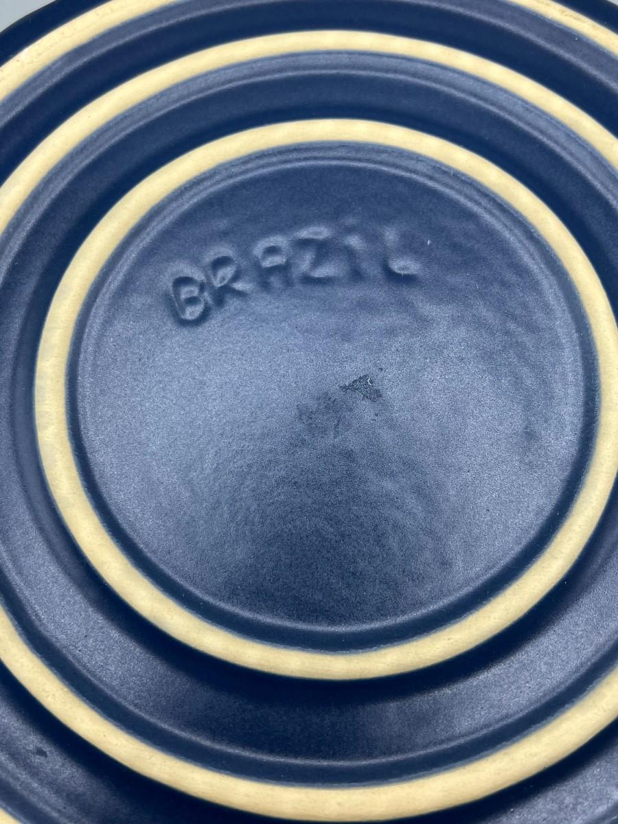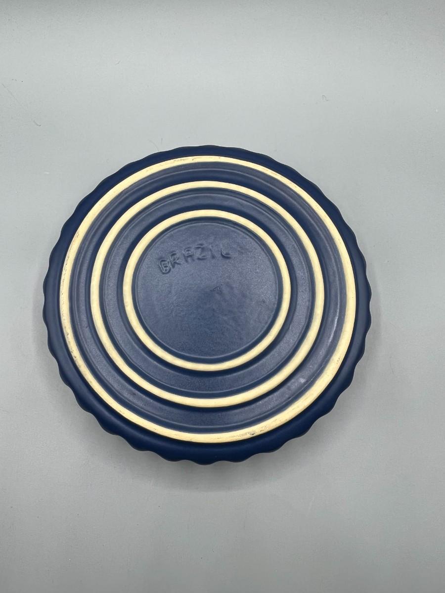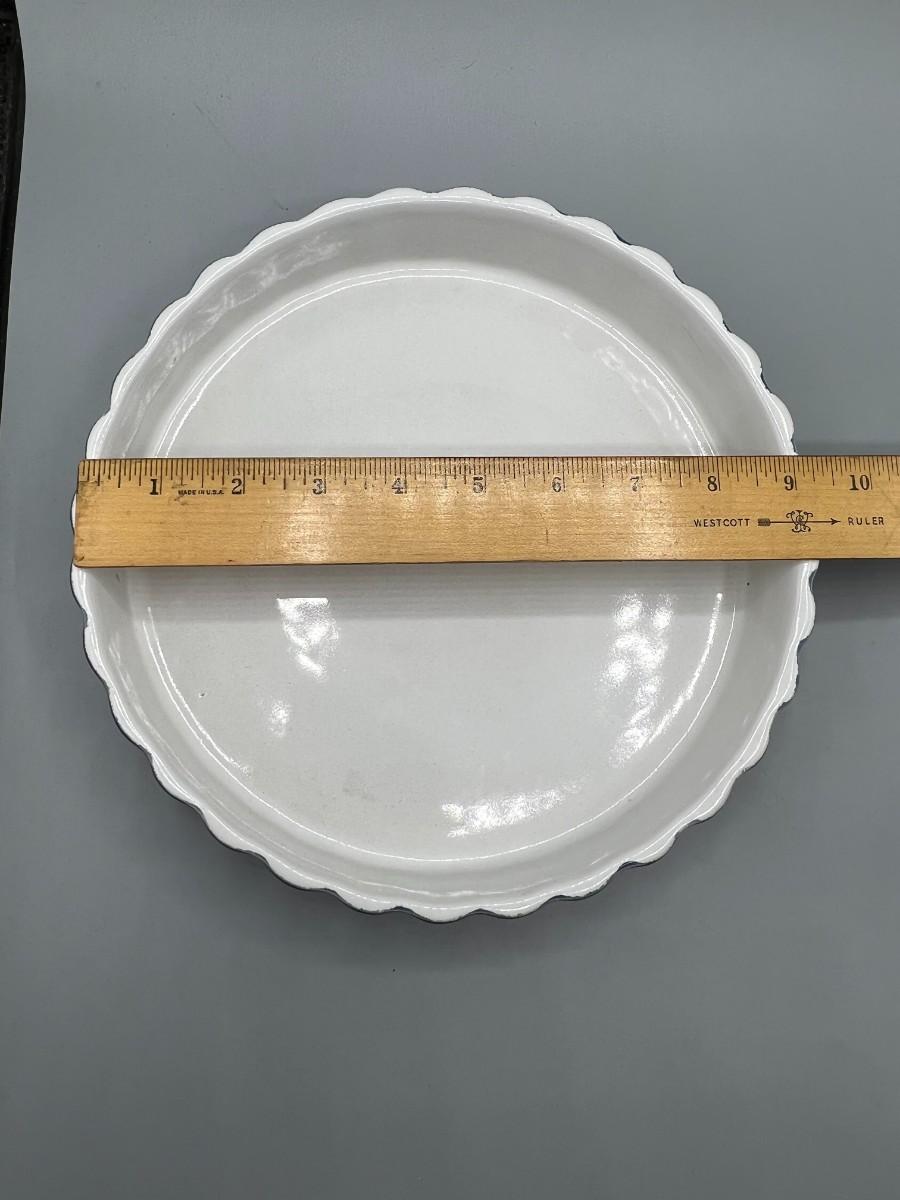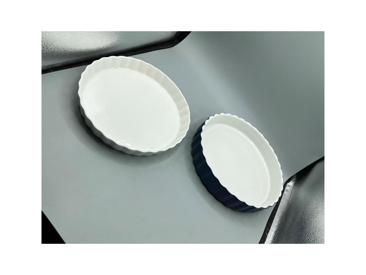 Set of 2 ceramic tart pans. One white one navy blue. Good condition. About 9" size.