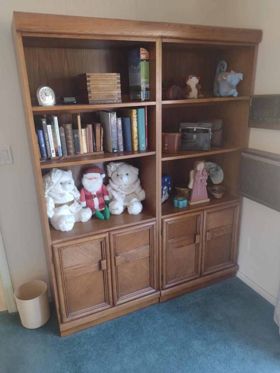 Set of Two Faux Reed Design Wall Unit Bookcases (No Contents)