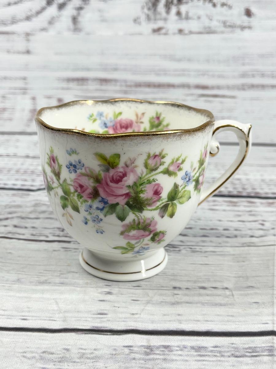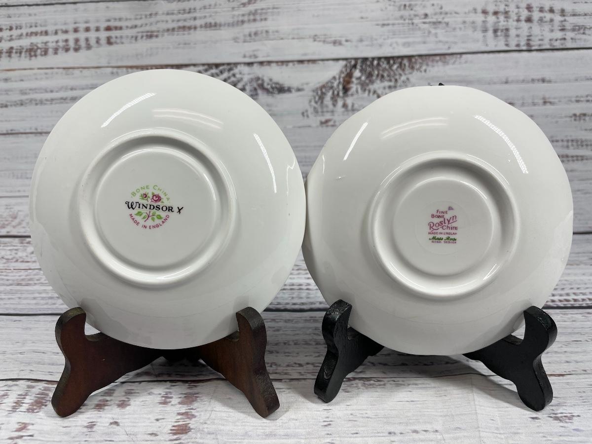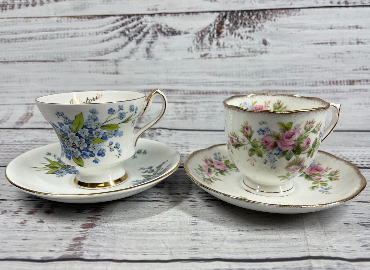 Set of Two Floral Fine Bone China Tea Cups & Saucers Windsor Roslyn