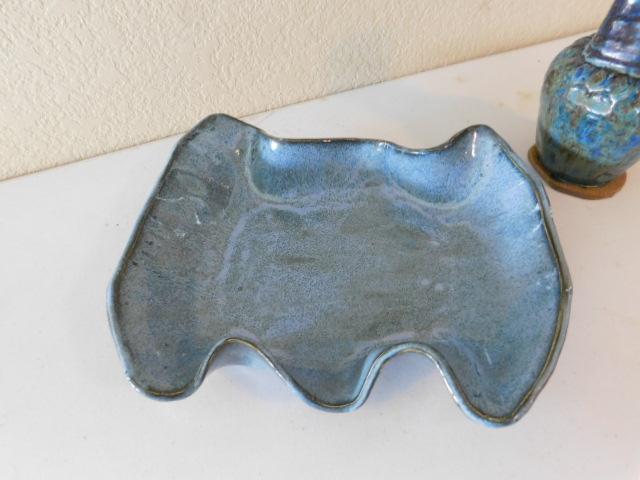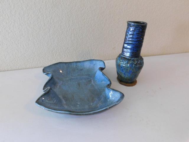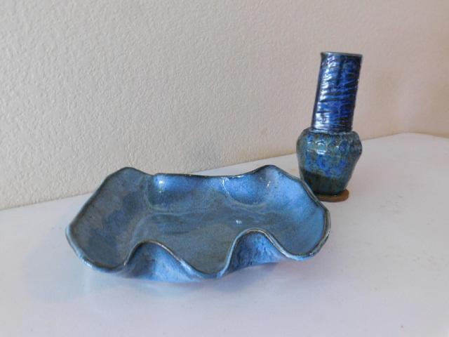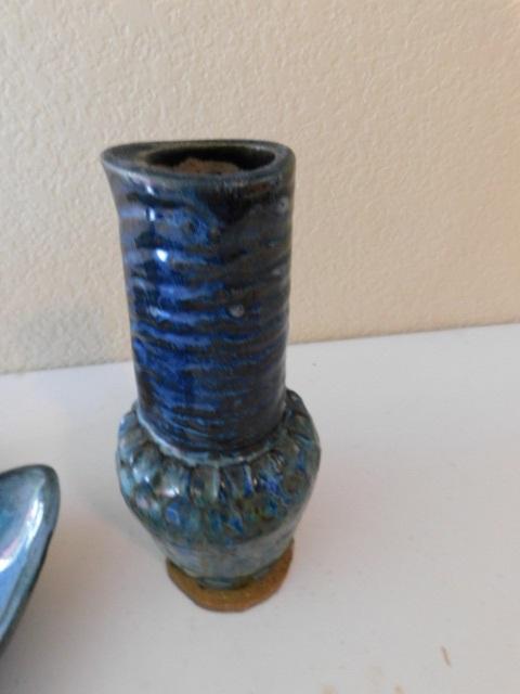 Set of Two Hand Crafted Pottery Ceramic Vessels Heavy Blue Glaze by Charyl Stone