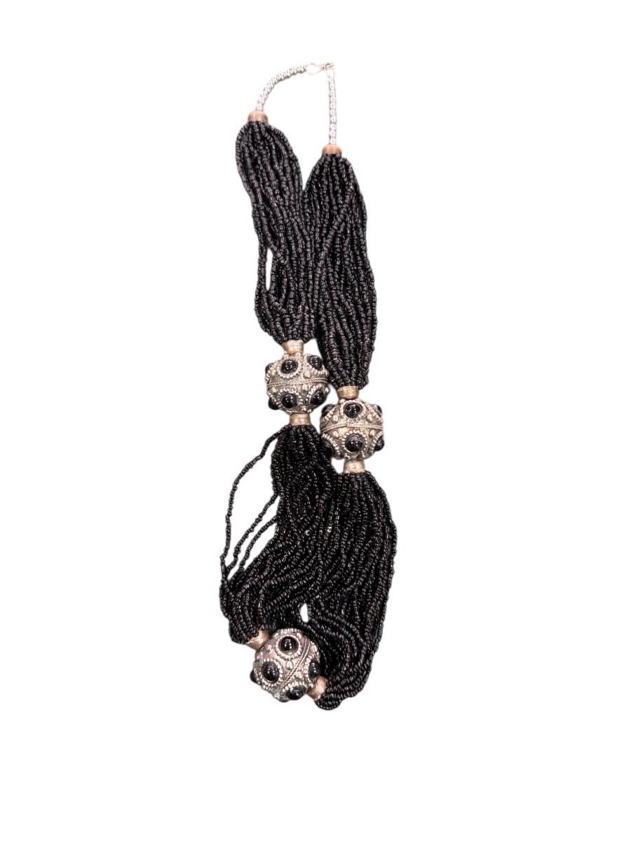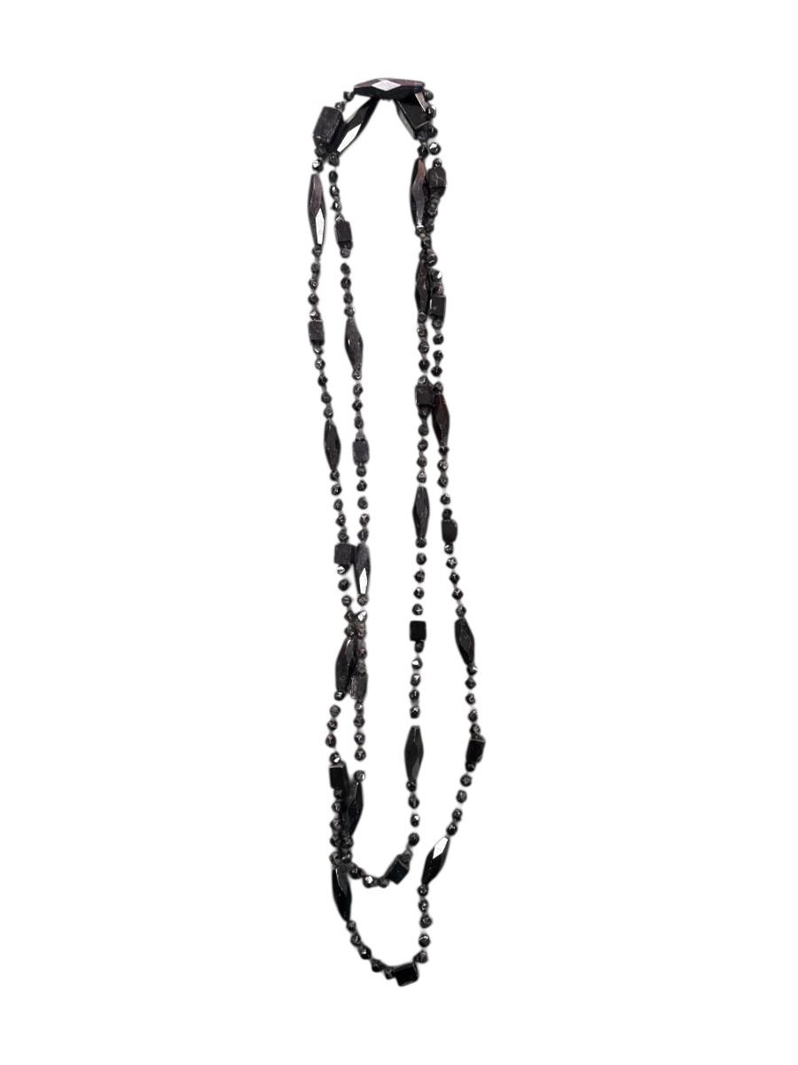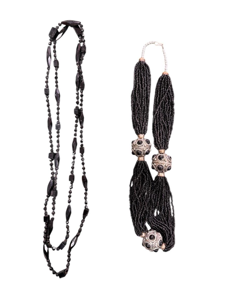 Set of Two Hematite colored beaded necklaces one long single strand and one multi strand tassel