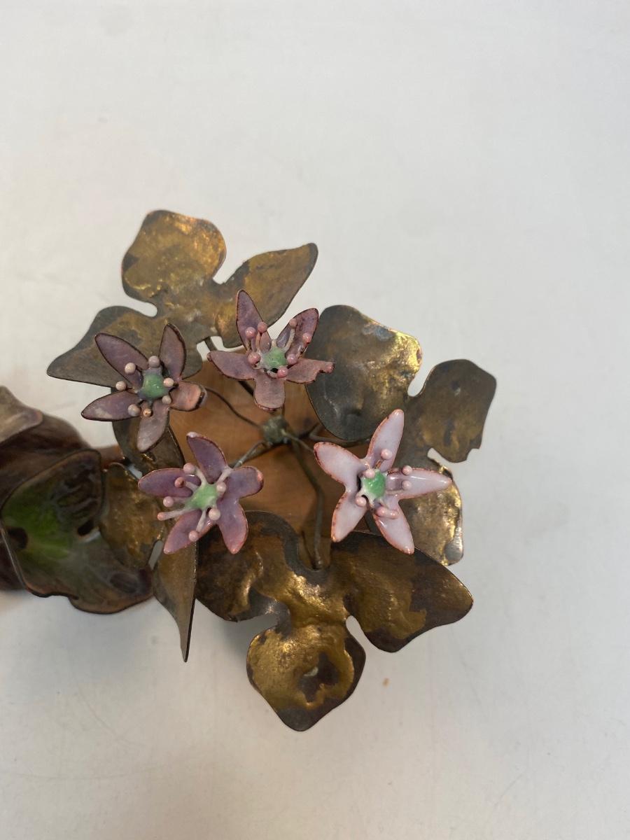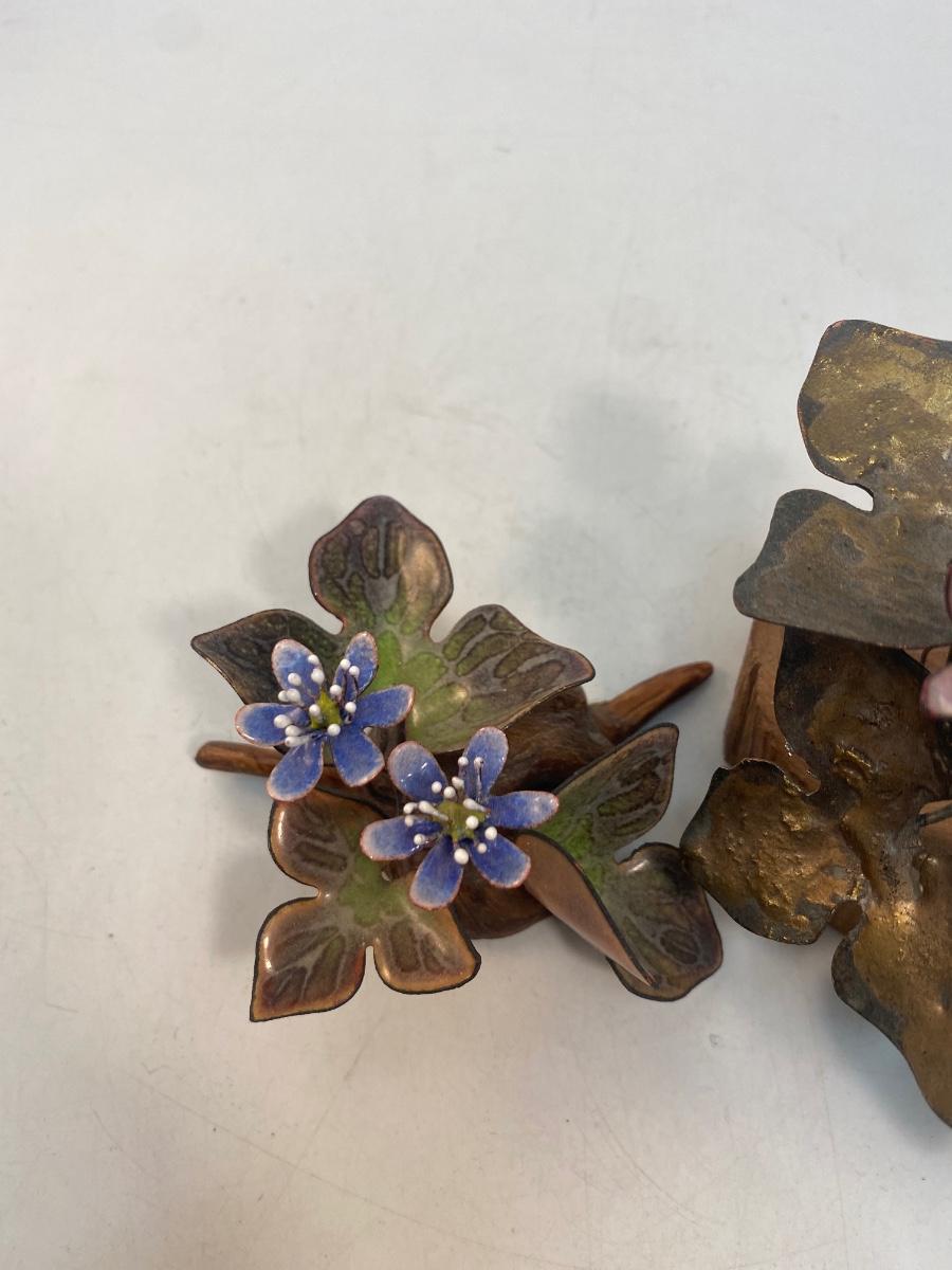 Set of Two Mid Century Retro Vintage Enameled Metal Art Flowers by Norman Brumm